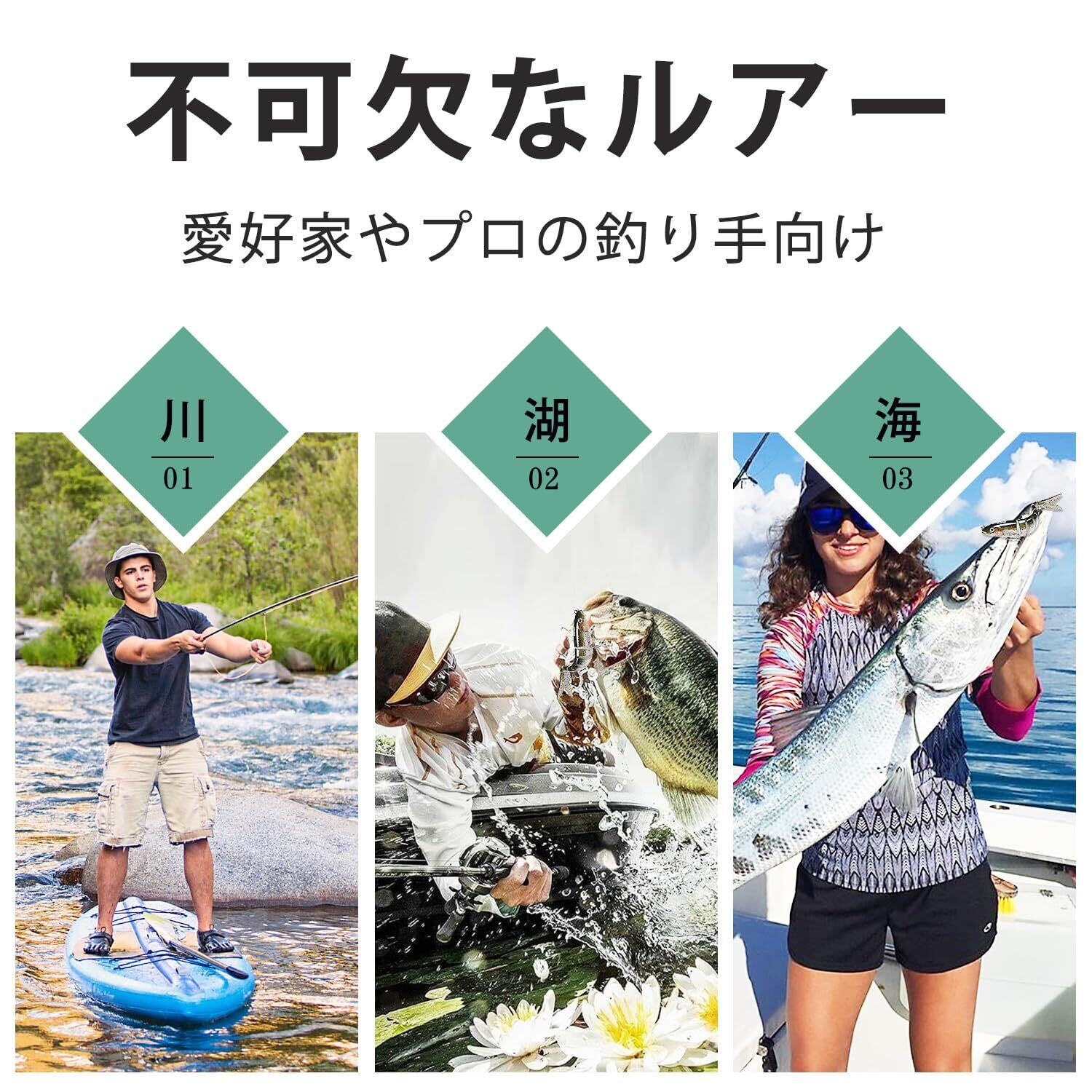 【幅広い適用性】このベイトは海水と淡水で使用できるだけでなく、あらゆる水層でも優れたパフォーマンスを発揮します。この餌はシーバス、パイク、トラウト、青物などの魚を釣るのにも幅広く使用でき、幅広い対象魚に適しています。