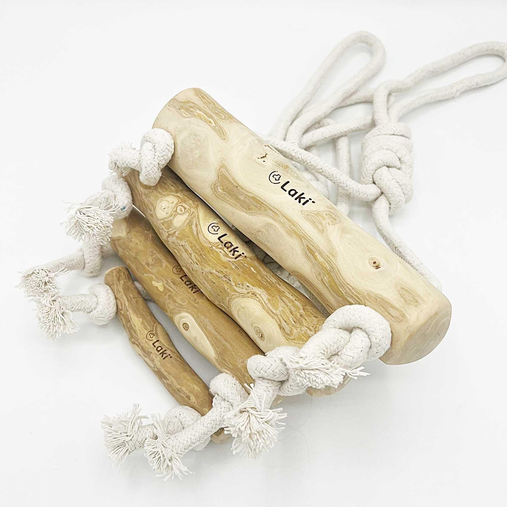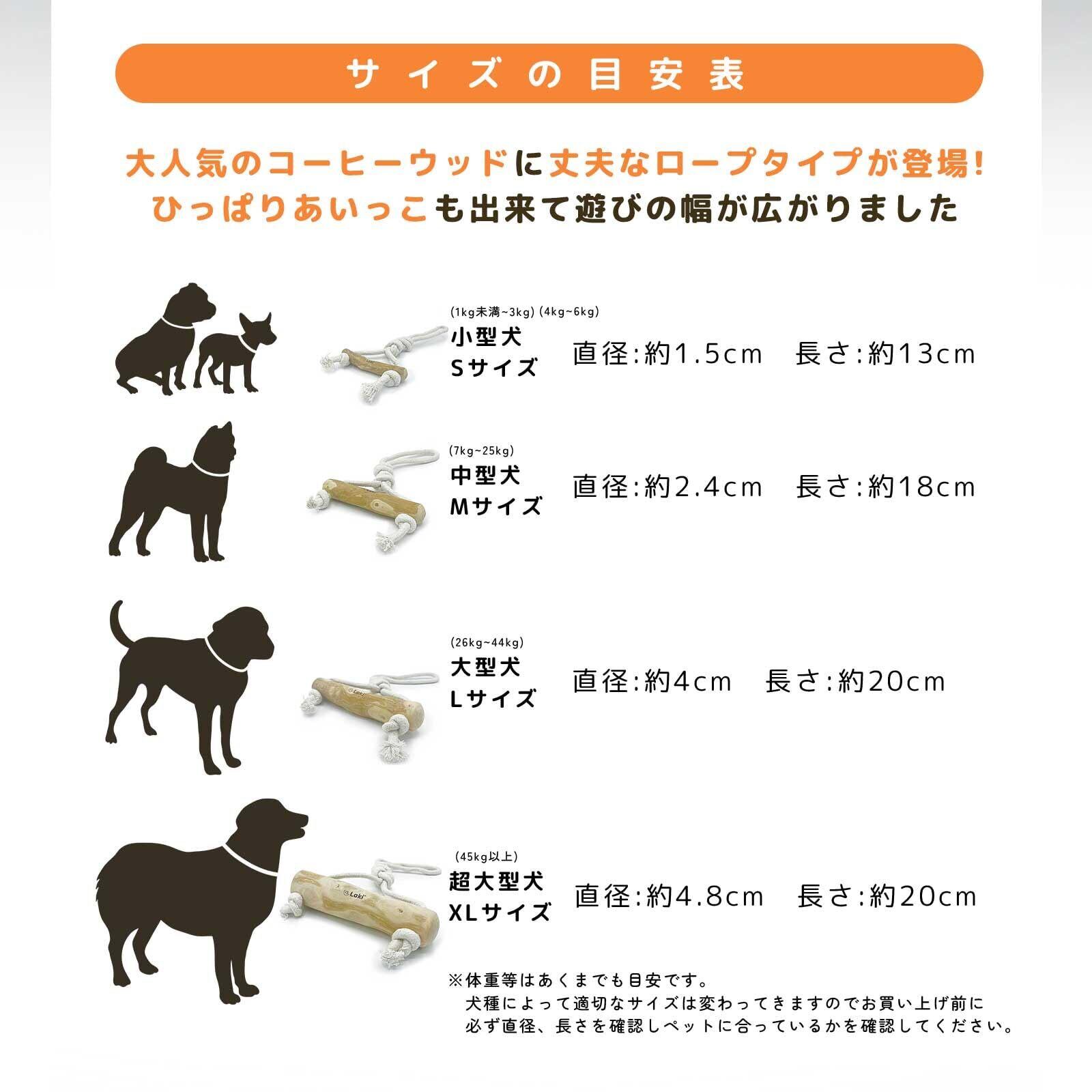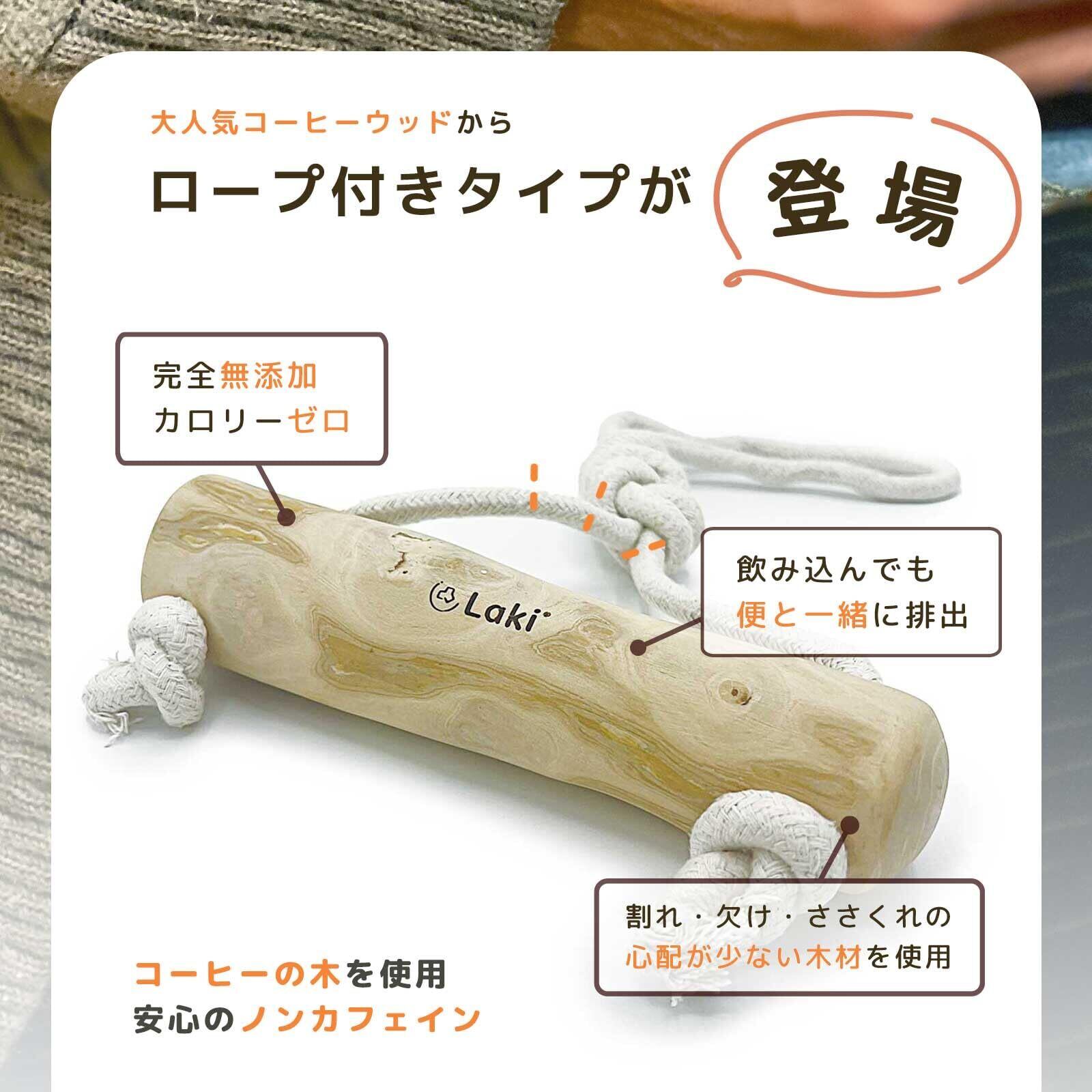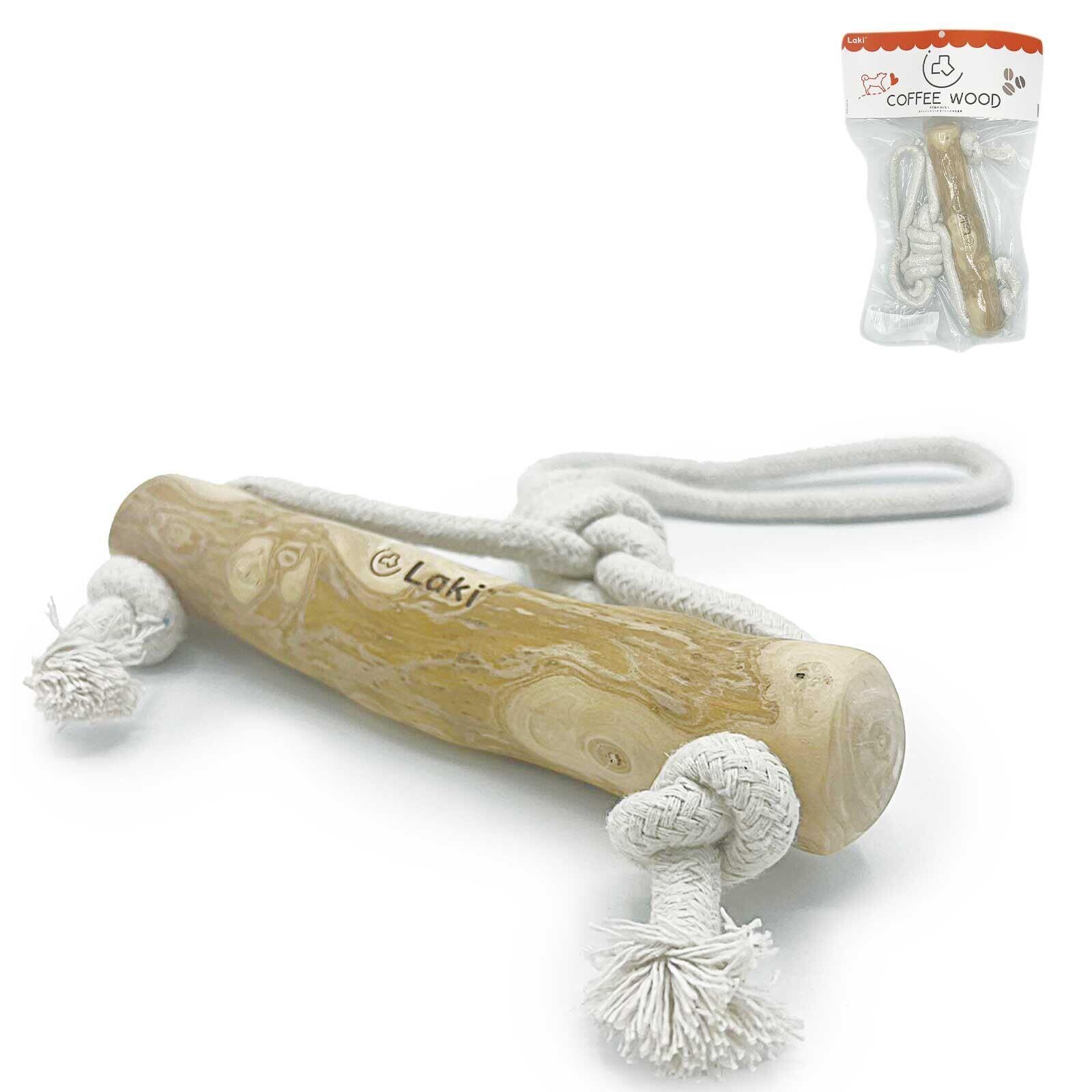 Laki ラキ コーヒーウッド with ロープ 犬 噛む 引っ張る おもちゃ 無添加 綿100% 天然 木 木のおもちゃ コーヒーの木 カフェインフリー デンタルケア L No.2