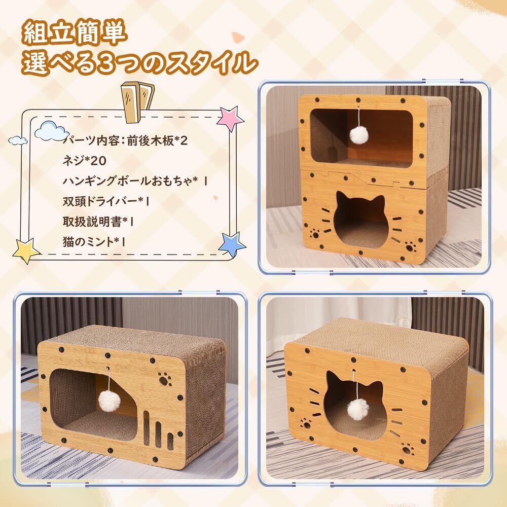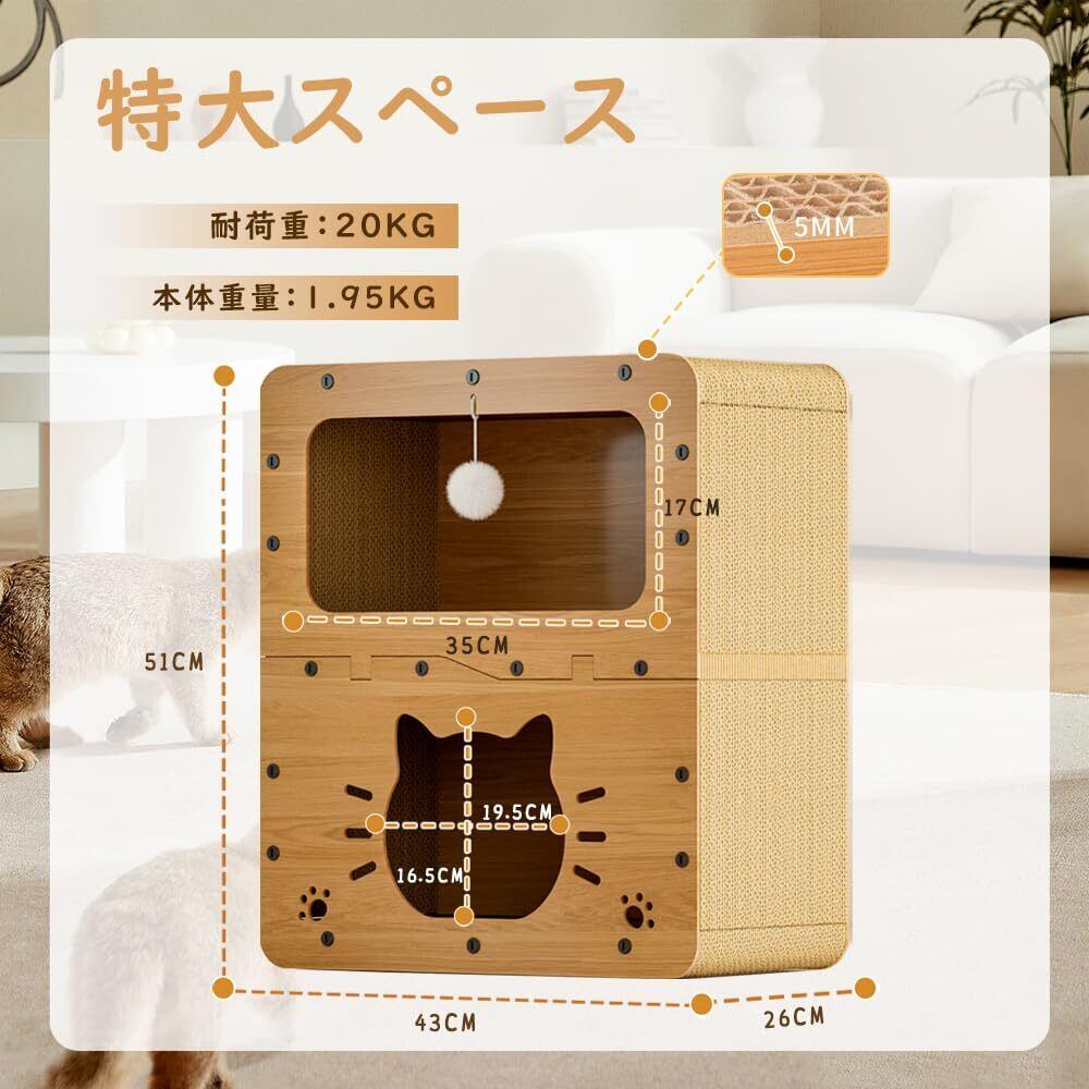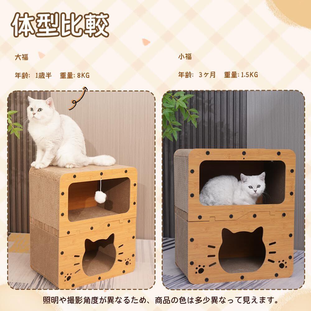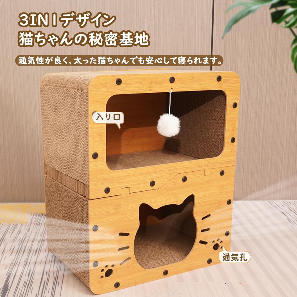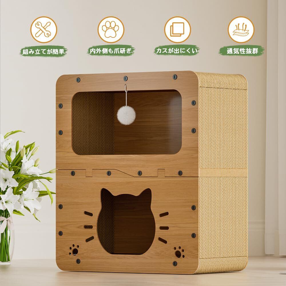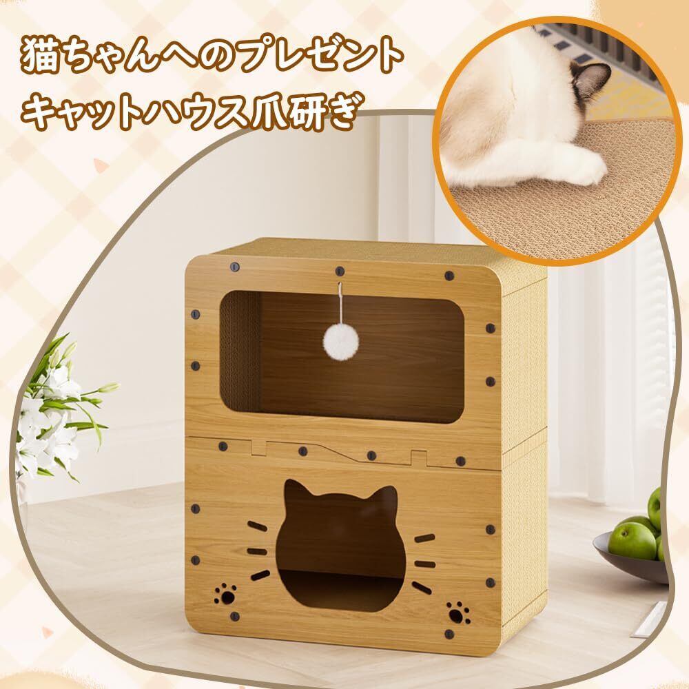 猫 ベッドと猫 爪研ぎハウス2in1デザイン:猫 爪研ぎハウスは休息や昼寝のための猫隠れ家だけでなく、運動や遊びのための猫 爪とぎハウスとしても機能します。猫つめとぎハウスは、猫が伸びたり、引っ掻いたり、這ったりする理想的な運動の機会を提供し、猫の自然な本能を満たします。