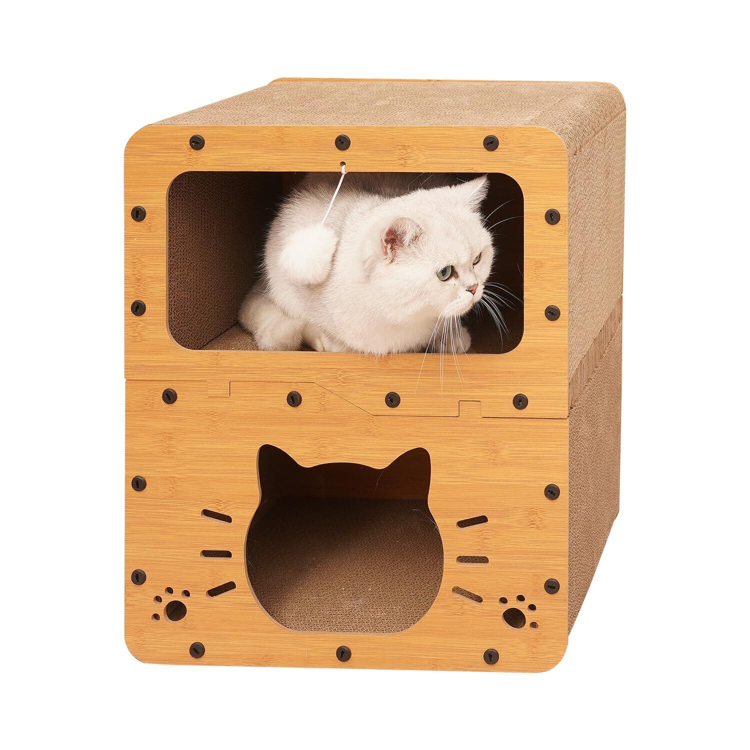 広々としたサイズ:入り口が広く設計されており、猫が快適に出入りできます。複数の猫ちゃんの遊びや睡眠に共有でき、太った猫ちゃんでも安心です。ユニークなデザインは、屋内キャットハウスを美しい家の装飾にします。