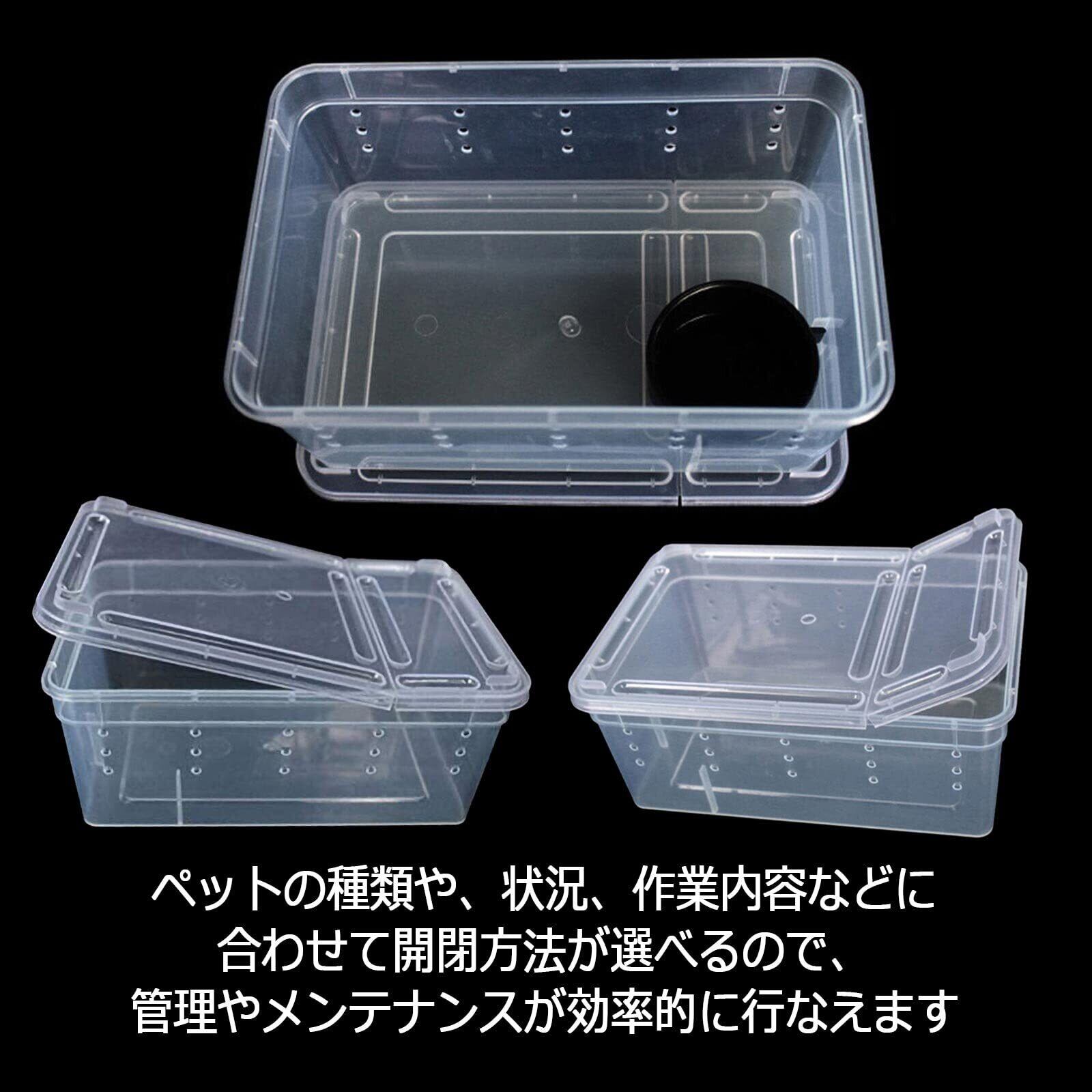 シンプルチョコ 爬虫類飼育ケース ケージ 透明 蓋付き 両開き 空気穴 換気 熱の拡散 観察 自由研究 昆虫 両生類 カメ クワガタ スズムシ コオロギ (19×12.5×7.5cm)