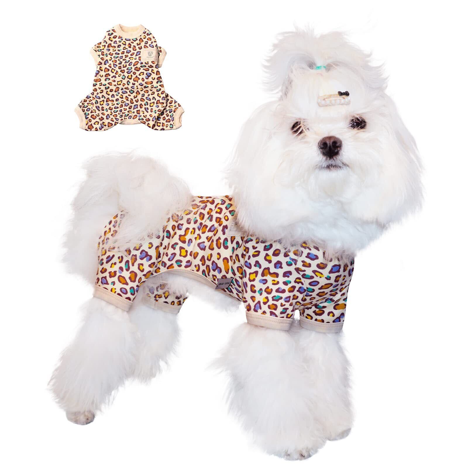 TONY HOBY 犬服 パジャマ 100%ソフトコットン生地 小型犬服 ヒョウ柄 4本足入れ 暖かい 犬のロンパース 可愛いかつ元気な服 春夏秋冬用