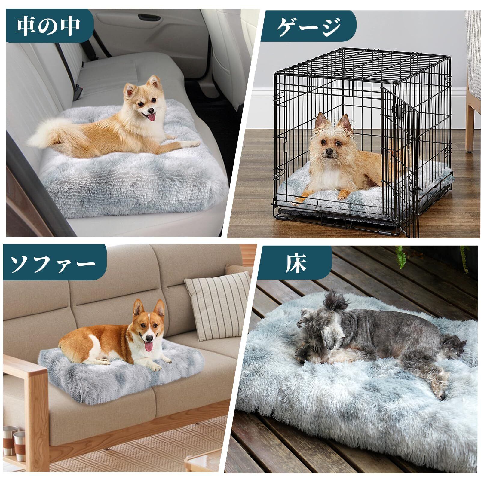 ULIGOTA ペット用クッション 犬 猫 ベッド クッション マット ふわふわ 滑り止め 犬ベッド ペットマット 暖か 寒さ対策 ケージ クッション 室内用 秋冬用 M (75*50cm ホワイトグレー)