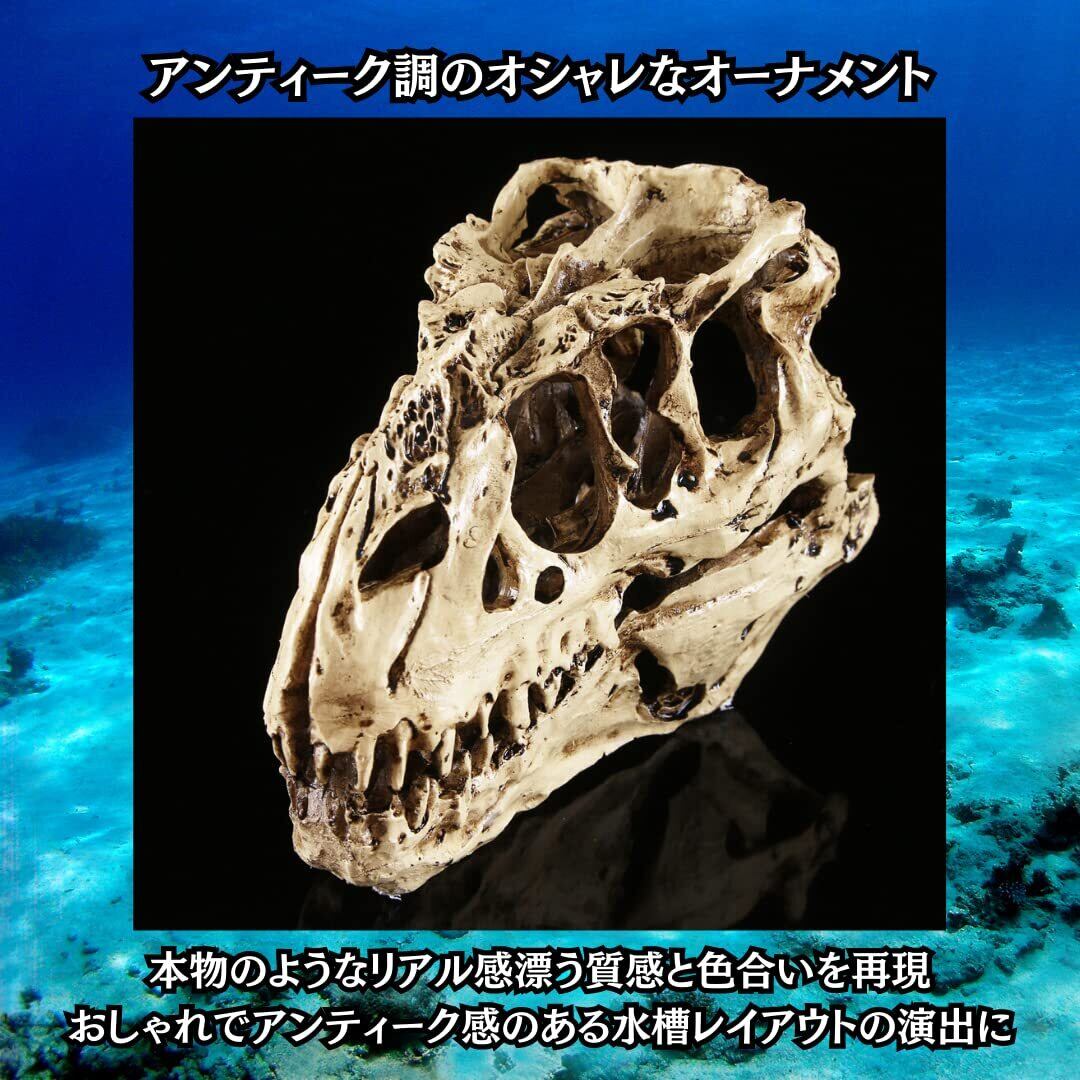 【リアル感漂うおしゃれなオーナメント】ジュラシックな恐竜の化石をモチーフにした、アンティーク調のアクアリウムオーナメントです。独自の塗装技術により、本物のようなリアル感漂う質感と色合いを再現しております。おしゃれで味のある、素敵な水槽レイアウトの演出に最適です。