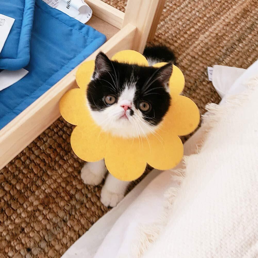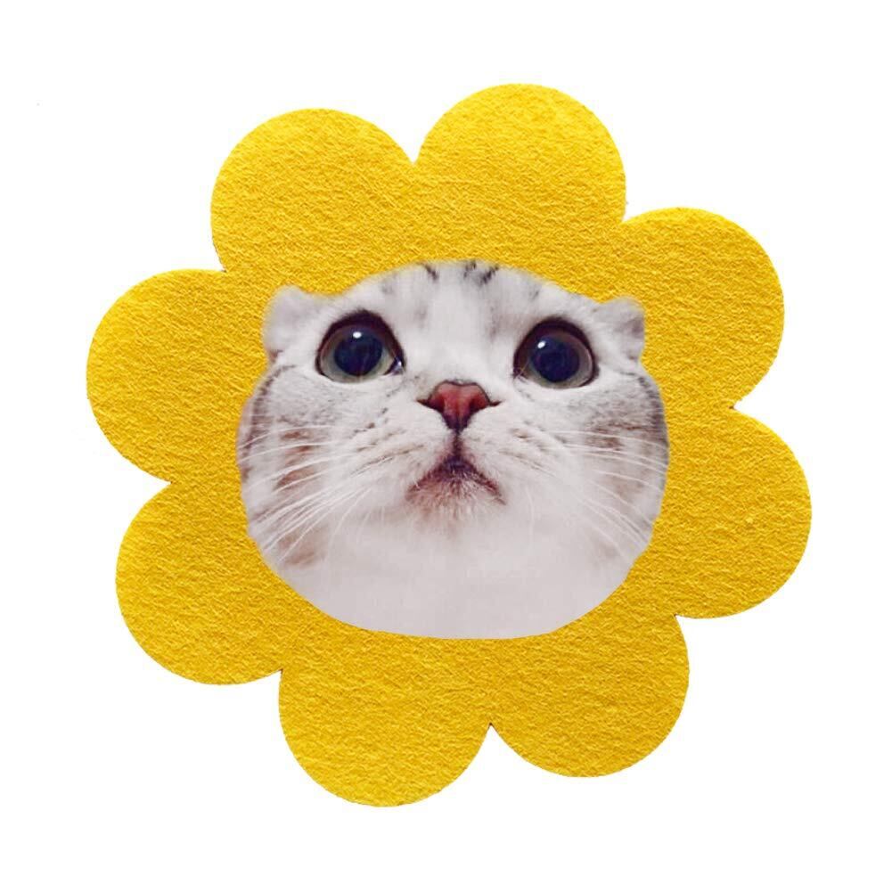 KUVEELA PET 4枚 エリザベスカラー 猫用品 ドーナツカラー エリザベス フェルト生地 軽量 ソフト かわいい 去勢 避妊 湿疹 傷口なめ防止 掻き防止 爪切り イエロー(4枚 、L)