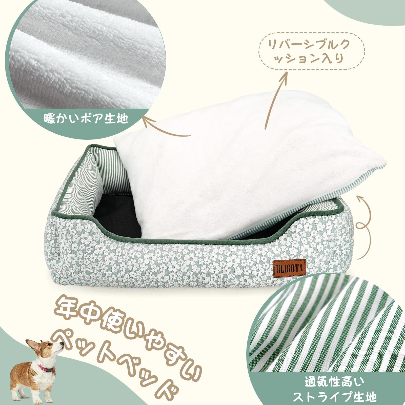 リバーシブルクッションも付きで、季節、気分やインテリアに合わせて印象を変えることができます。一年中使いやすいペットベッドです。クッションのカバーは取り外して洗濯機で洗うことができます。いつでも清潔に気持ちよく過ごすことができます