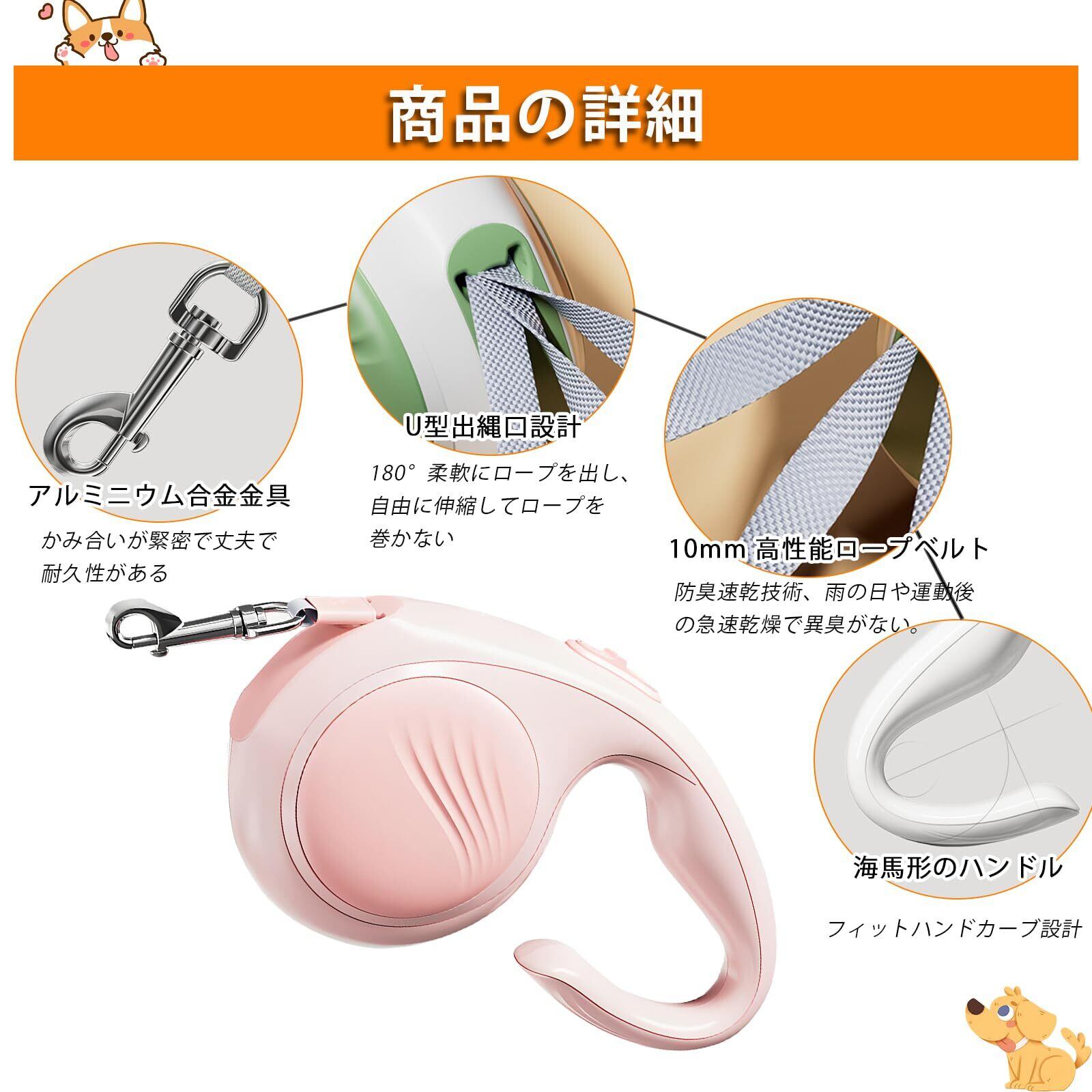 【人気商品】THKWOO 犬用リード伸縮 ワンタッチロック 自動巻き取り 長さ3M 荷重20kgまで 耐摩耗ABS&アルミ合金製 人間工学ハンドル 10mm速乾ロープ 超軽量 伸縮 犬 リード 持ち運び簡単 小型犬・中型犬対応 (ピンク) | gsmshop