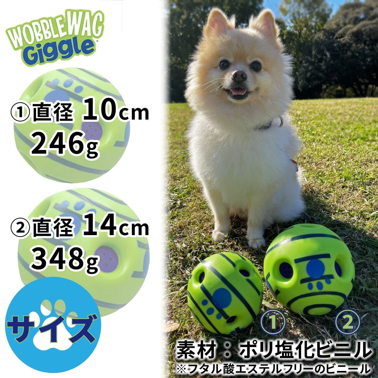 Wobble Wag Giggle Ball ワグル ワグ ギグル ボール (小) 中・大型犬用 くすくす笑うボール 今までに無い大きな音が好きなワンちゃんに 硬くて丈夫な音の出るおもちゃ 犬のおもちゃ 犬のボール 電池不要 お手入簡単 中型犬 大型犬 小サイズ