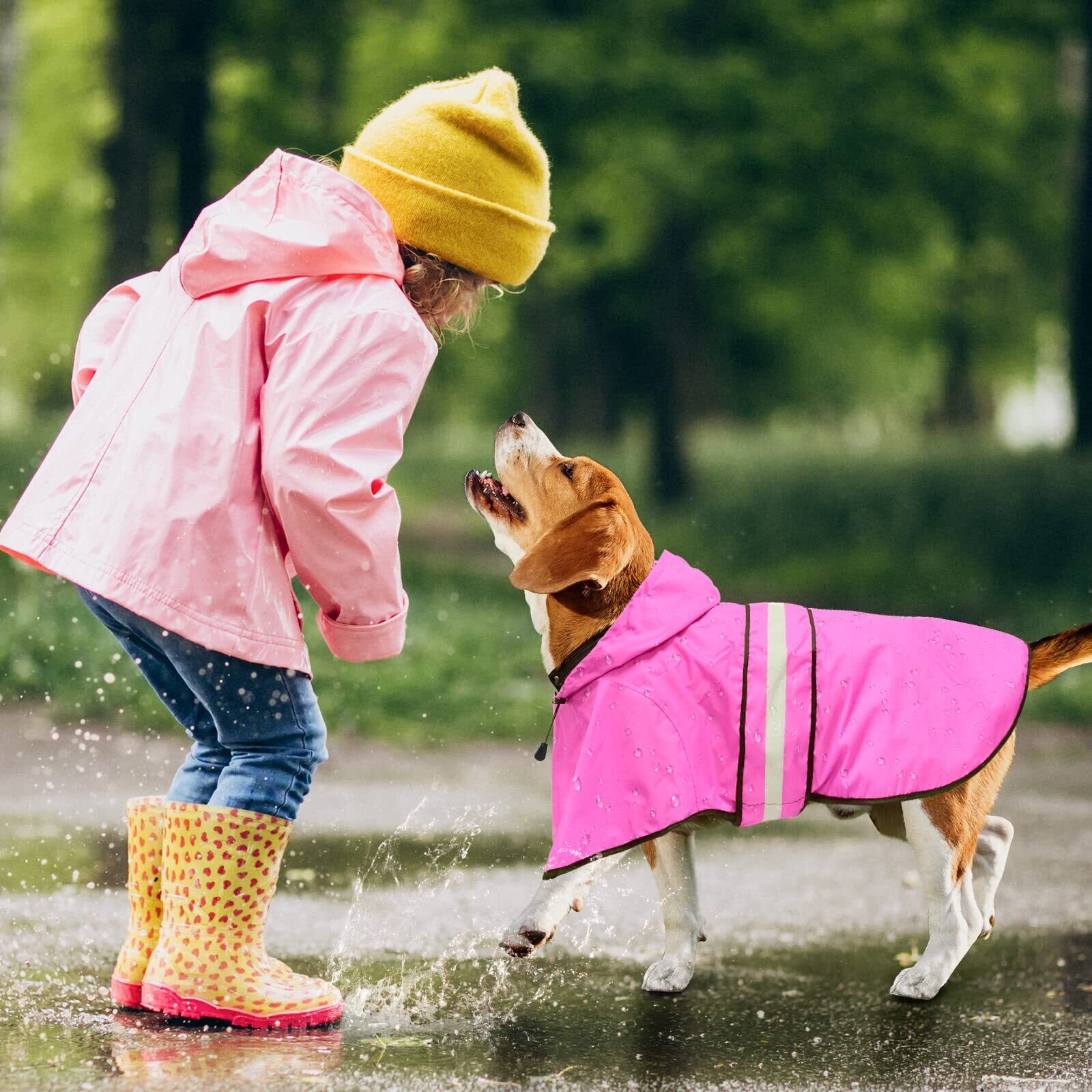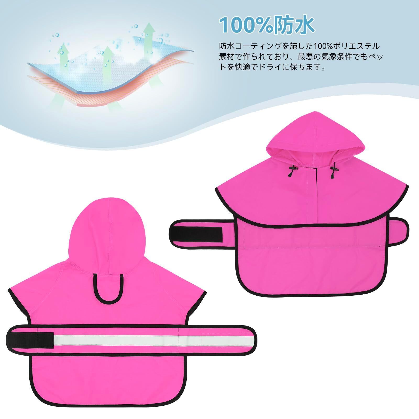 Dolitego 犬レインコート, 防水調節可能な反射型 犬用レインコートジャケット, 軽量 通気性 ポンチョスリッカー 帽子付 散歩用 着脱簡単 梅雨対策 犬 服 (S, ピンク)