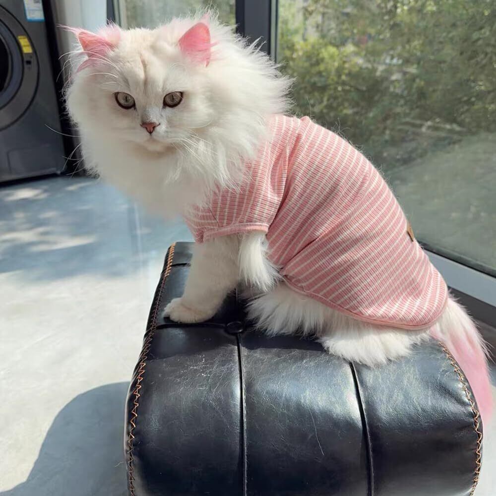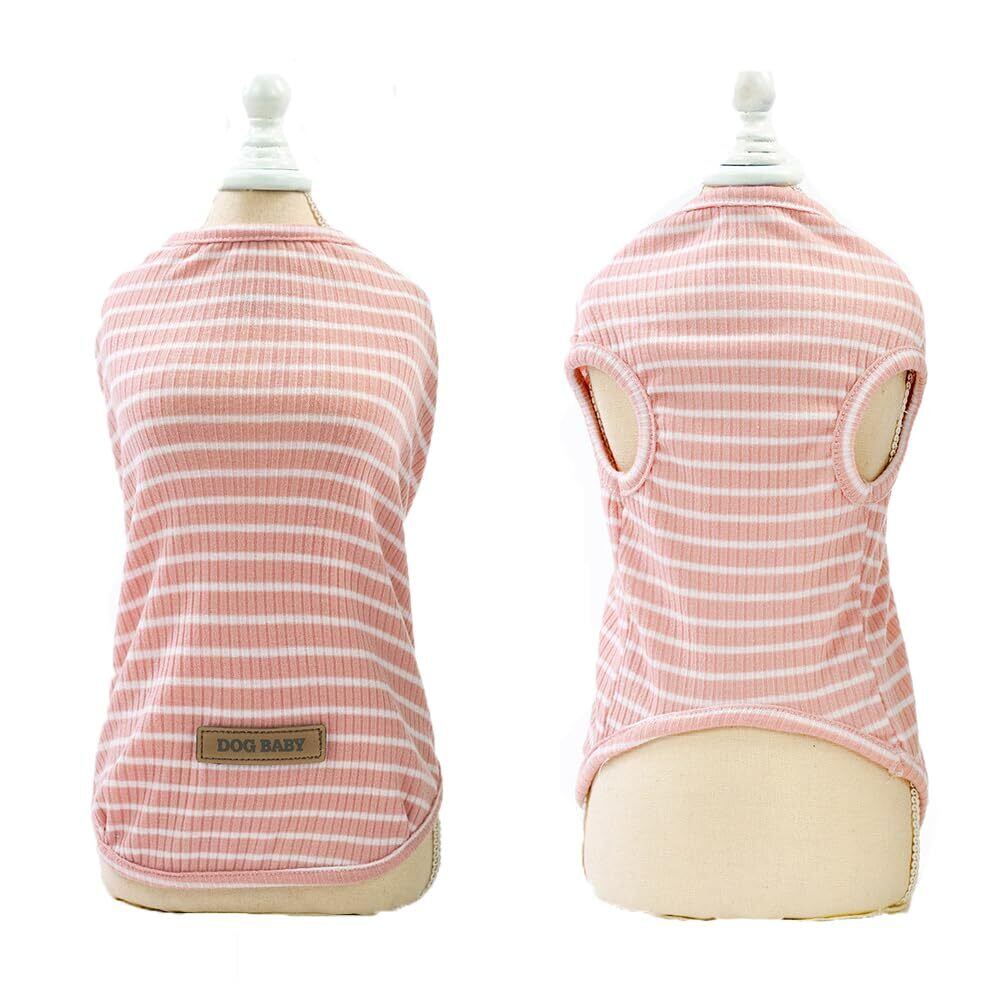YBGGJO 犬服 ストライプ Tシャツ タンクトップ 小型犬用 夏 おしゃれ かわいい 柔らかい 涼しい 脱毛保護 犬猫洋服 ペット服 (ピンク, 2XL)