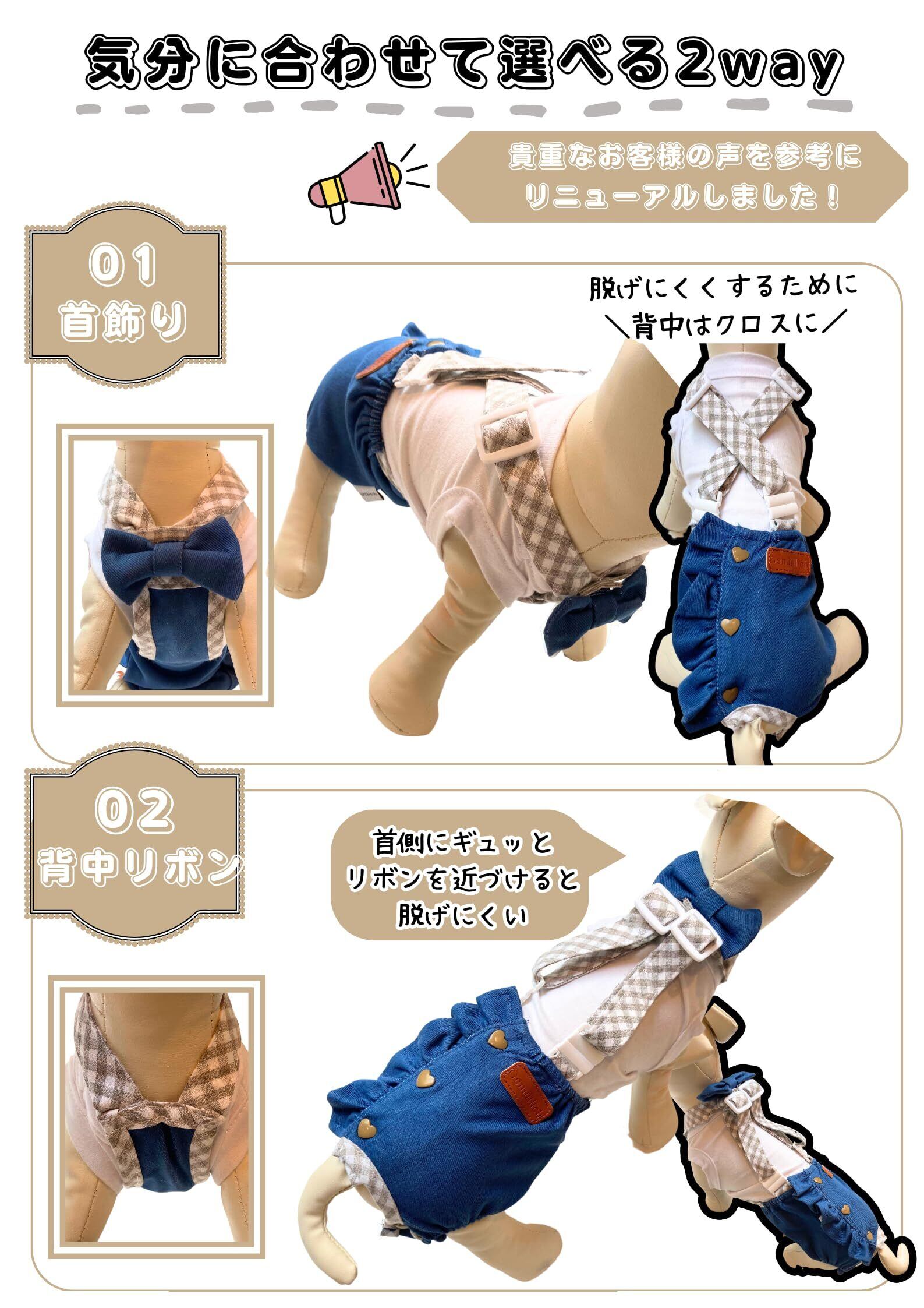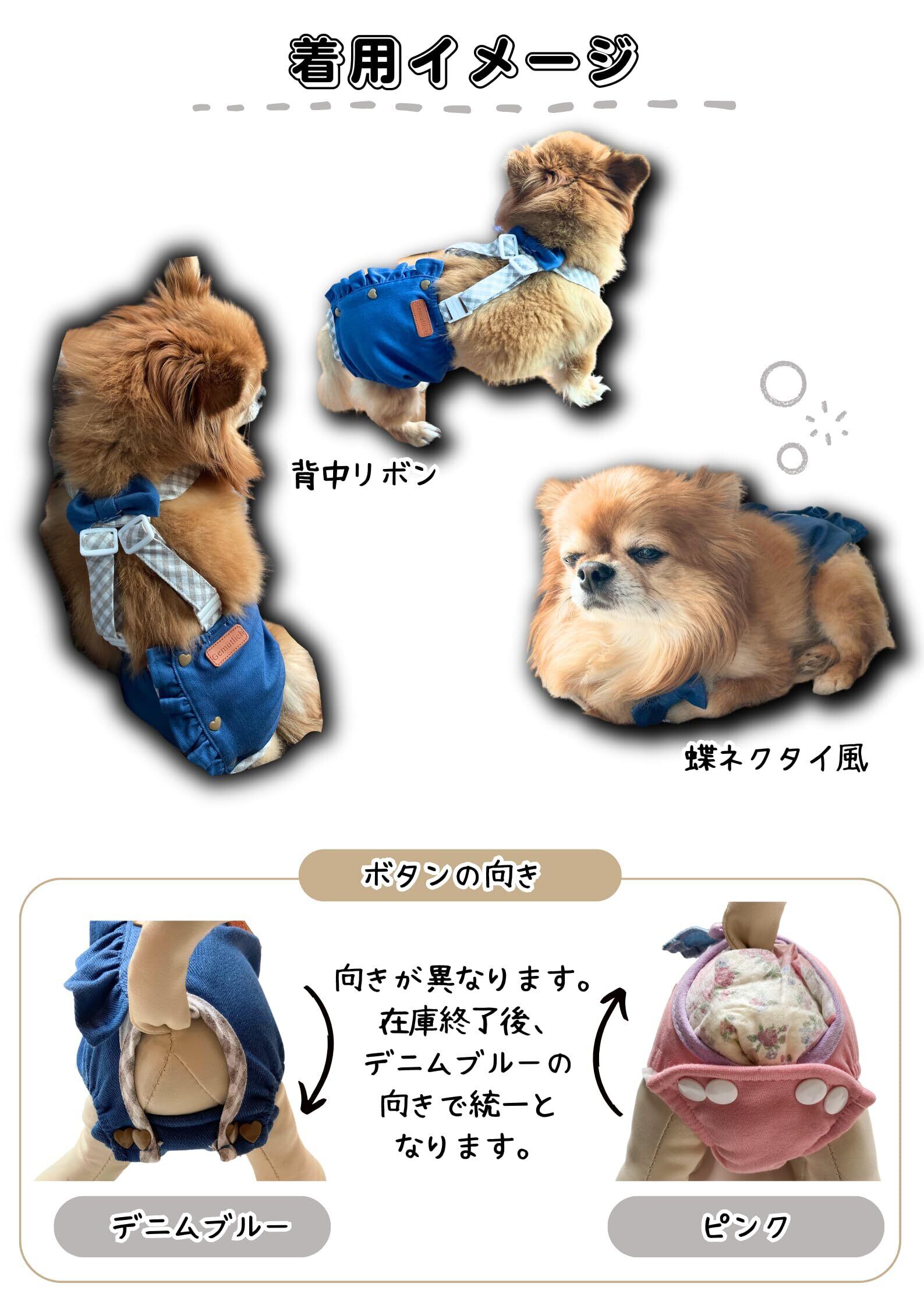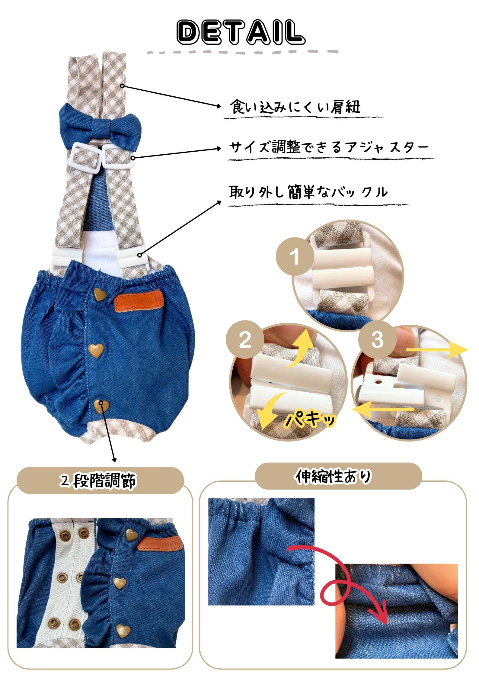 おむつカバー マナーベルト 肩づれ防止リボン付き マナーパンツ サニタリーパンツ ドッグウェア マーキング 介護 マナーパンツ 01 (デニムブルー, 2XL)