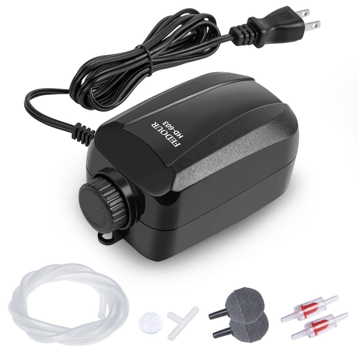 FEDOUR 2つ吐出口の静かな水槽エアーポンプ 4W可調節 水槽に酸素提供 アクセサリー付きエアポンプ (黒色)