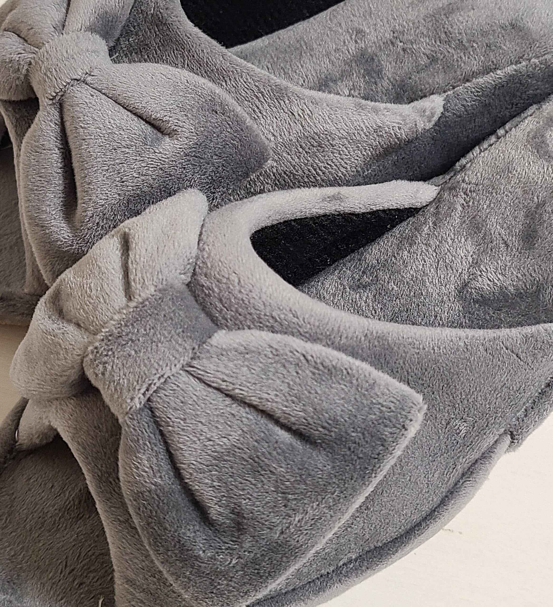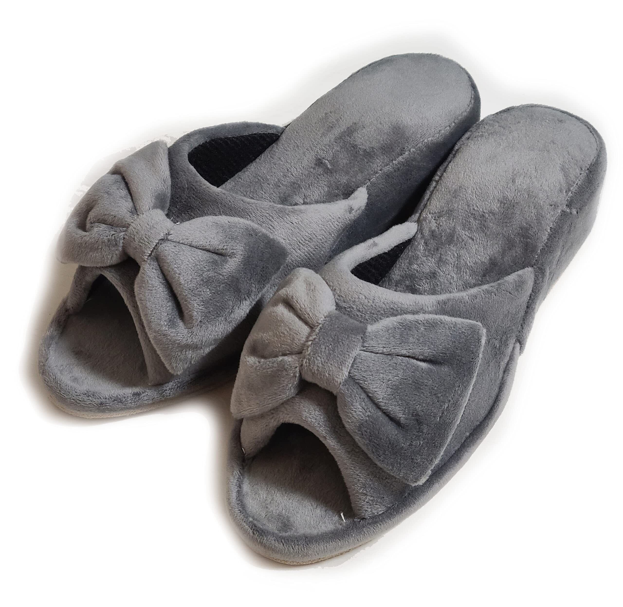 ベーシックスタンダード ヒールスリッパ レディース 室内 軽量 静音 おしゃれ 4cm 美脚 STYLE ベロア リボン グレー (学校 参観日 受験 プロ用 サロン エステ などに) M