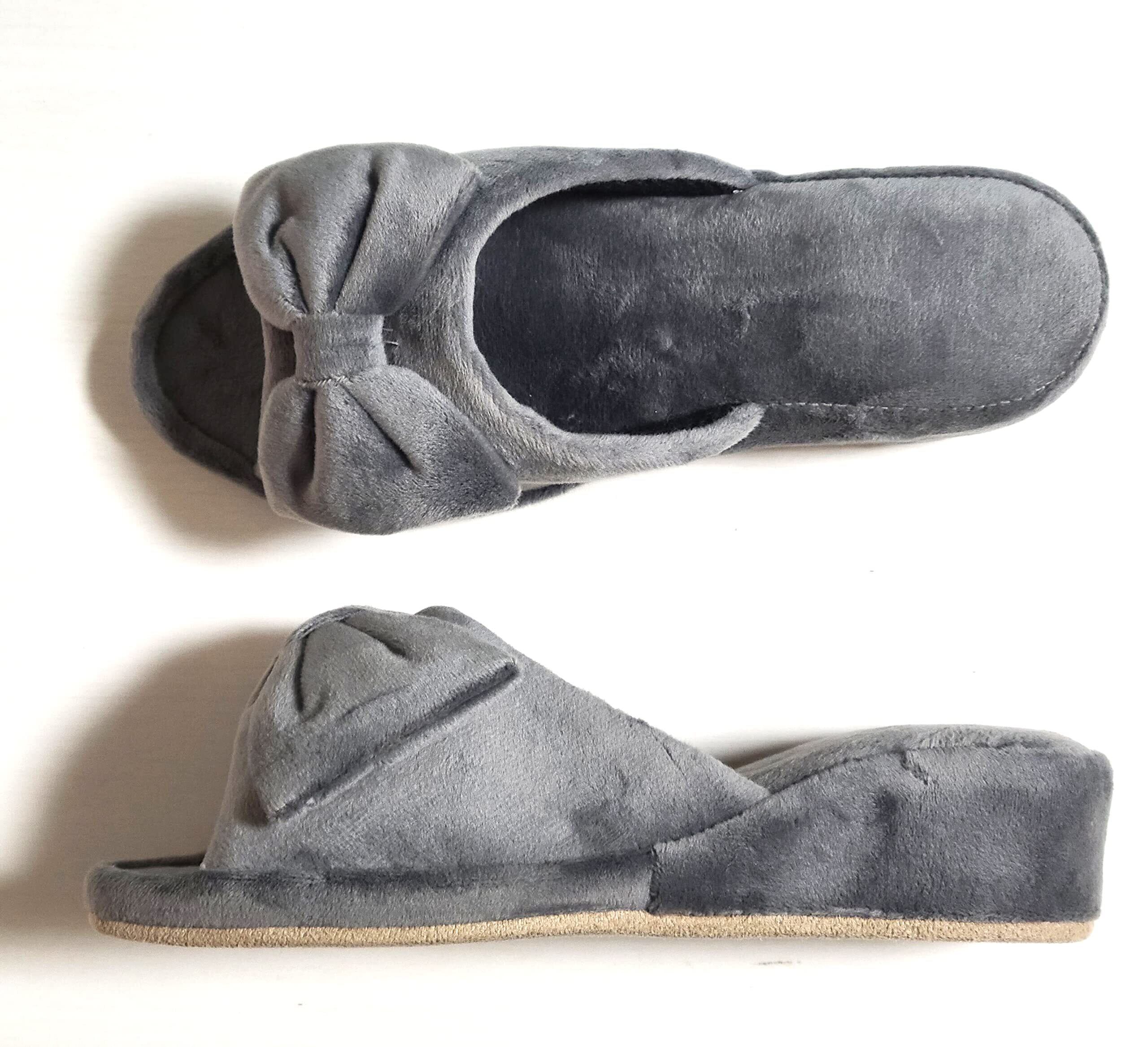 【特価セール】ベーシックスタンダード ヒールスリッパ レディース 室内 軽量 静音 おしゃれ 4cm 美脚 STYLE ベロア リボン グレー (学校 参観日 受験 プロ用 サロン エステ などに) M | gsmshop