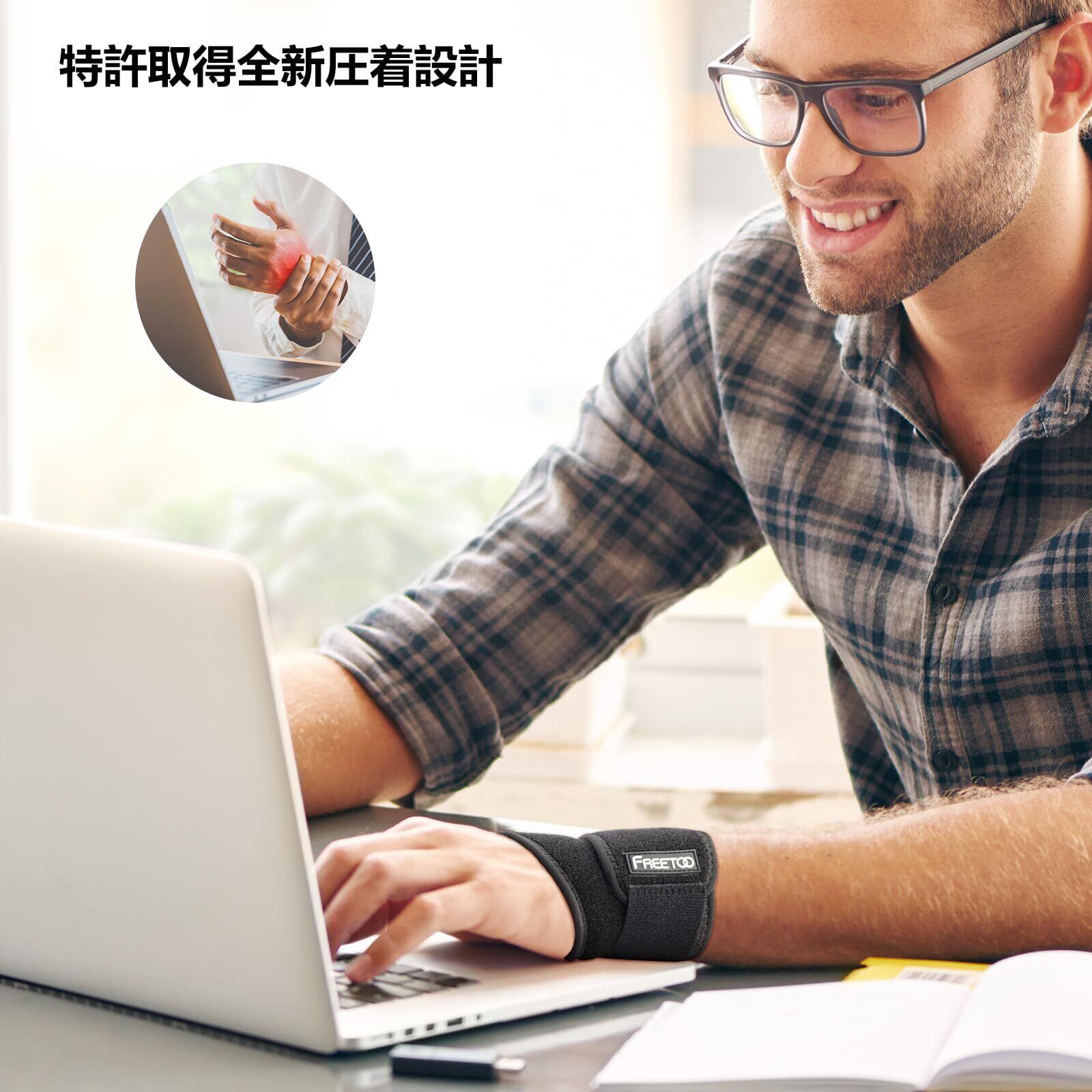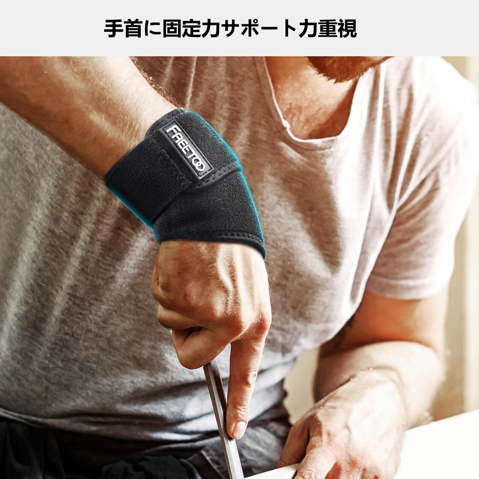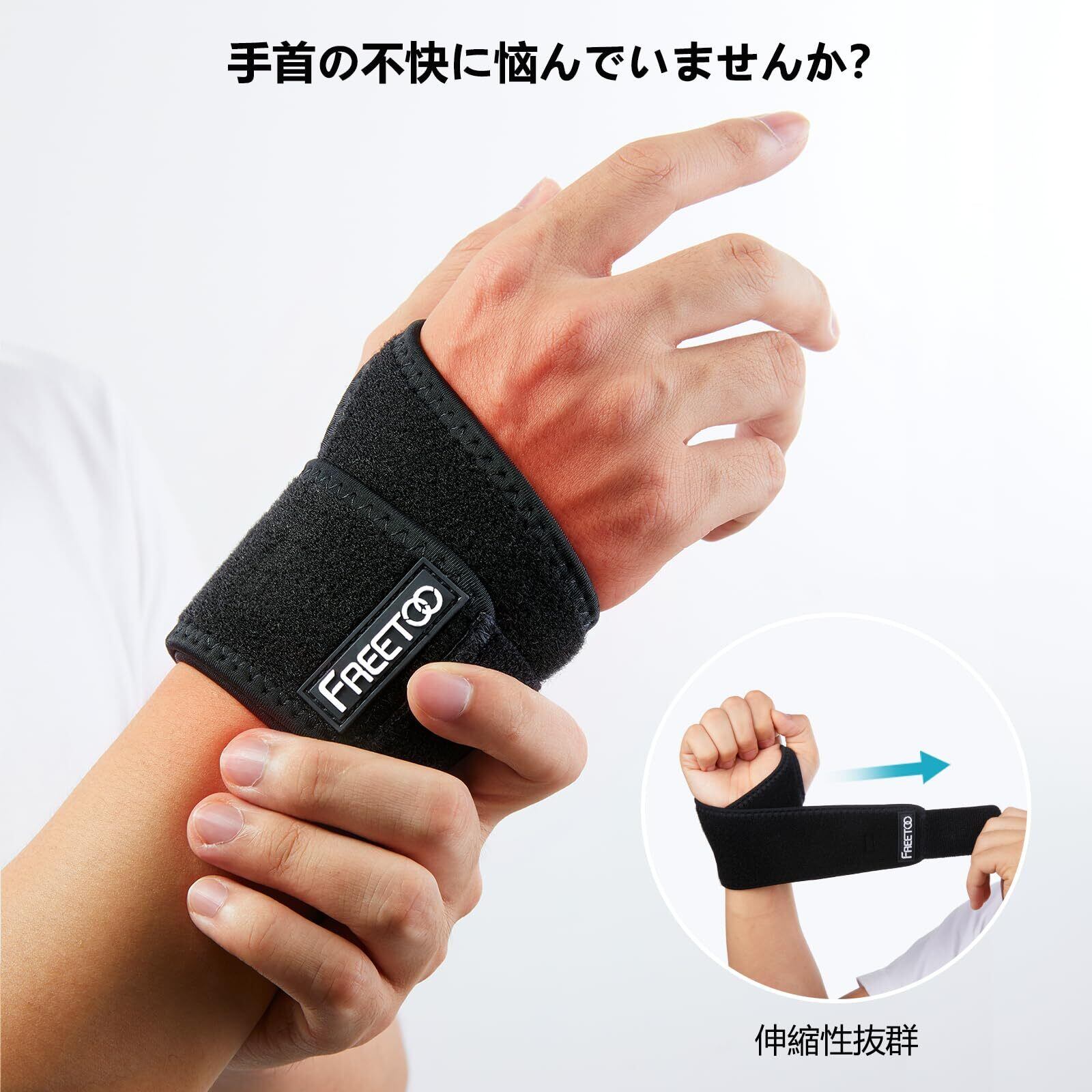 REETOO 手首 サポーター 強力サポート 吸汗速乾 男女兼用 スポーツ 家事 育児 パソコン/スマホ操作 ブラック