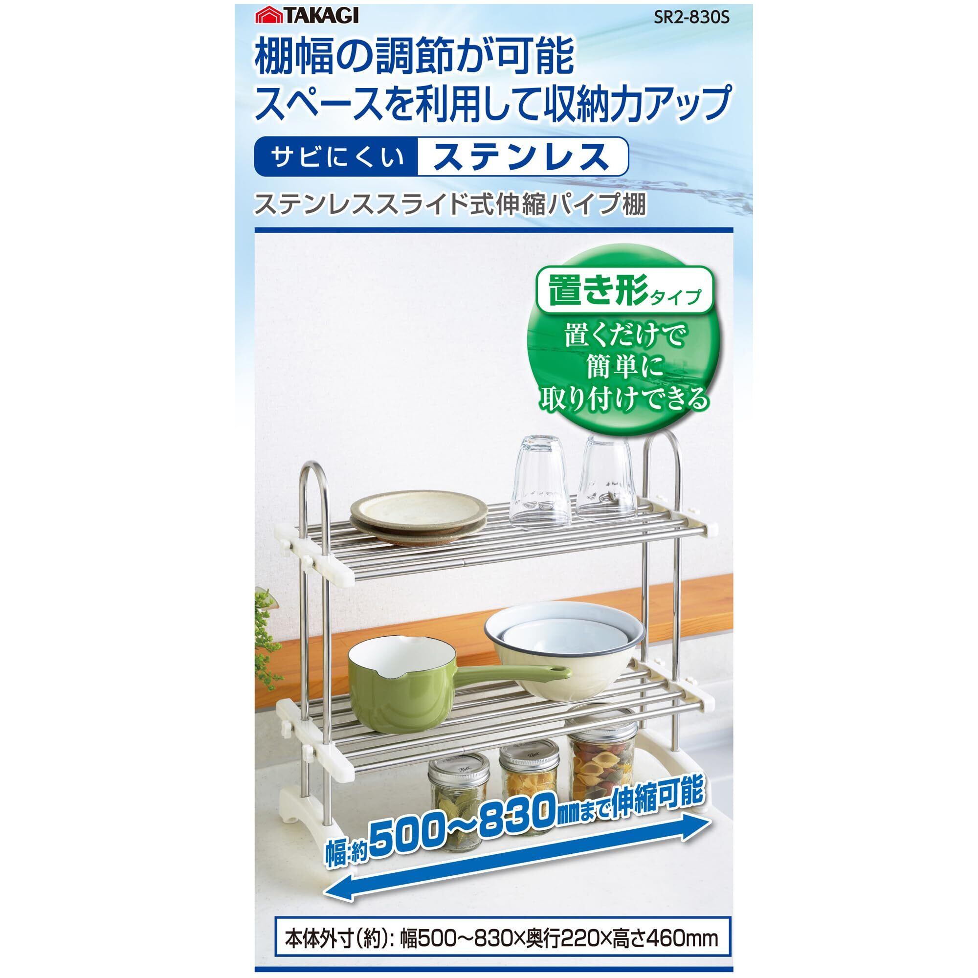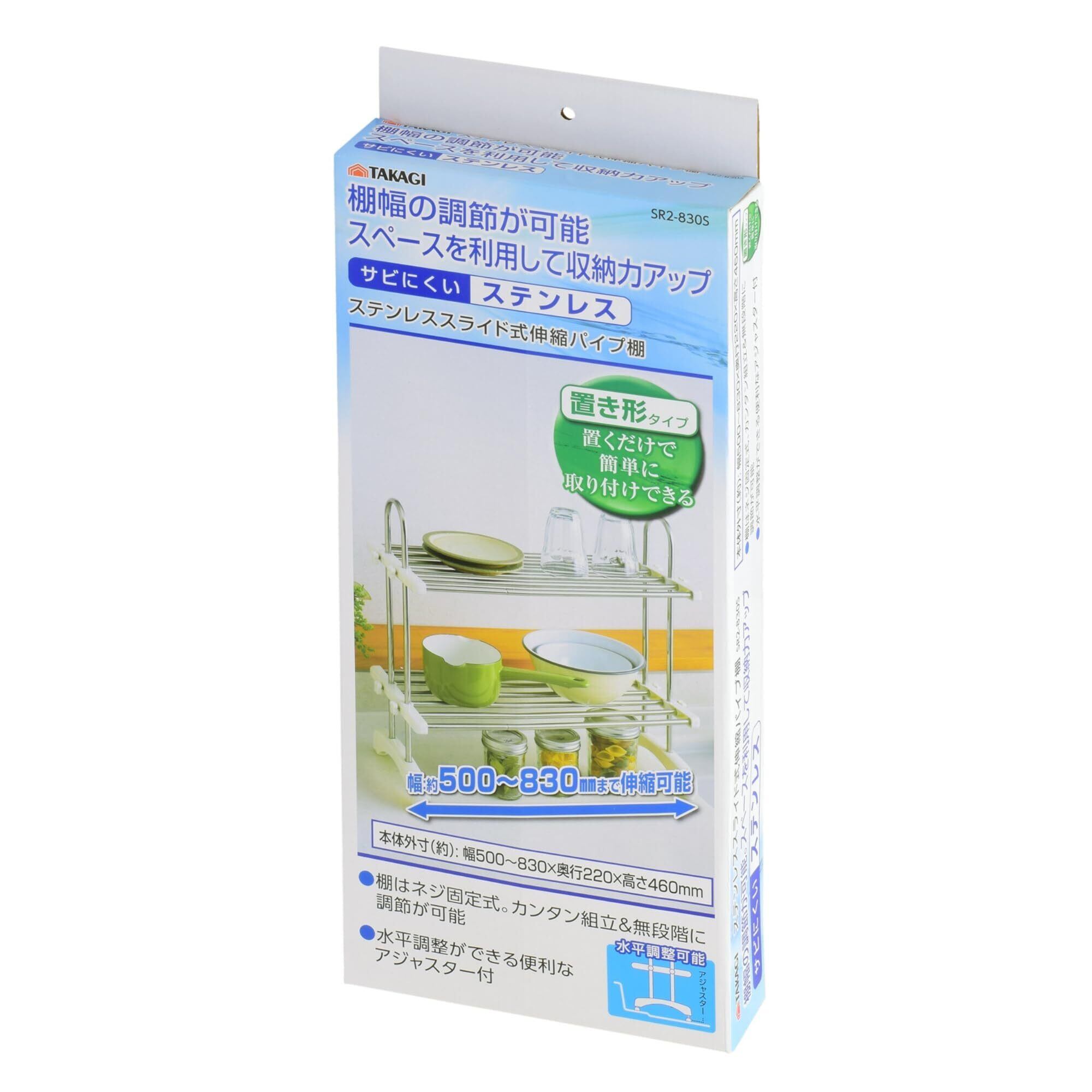 【在庫処分】高儀 TAKAGI ステンレス スライド式 伸縮パイプ棚 長方形 棚 幅調整可能 置き型タイプ シルバー キッチン置き棚 収納棚 キッチン収納 錆びにくい 耐荷重5kg | gsmshop