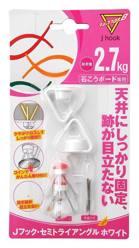 日軽産業 フック マジッククロス8 J hook セミトライアングル ホワイト MJ-020W 奥行1×高さ2×幅1.7cm キャップ2個、取付ピース2個、予備クギ9本 2入