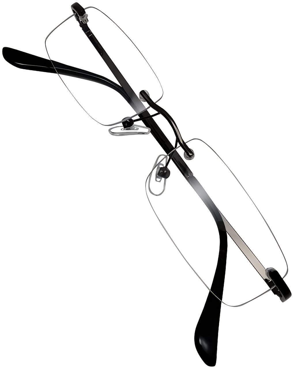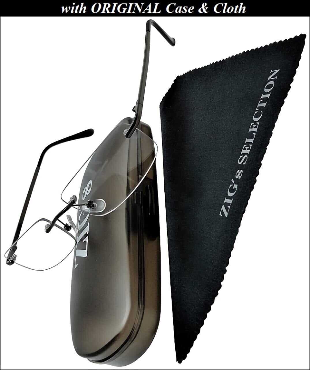 [伊達メガネ] エレガント ふちなし イメチェン コスプレ お洒落に目を守る UVカット クリア ツーポイント メタル 眼鏡ケース 男女兼用 (glzd01)