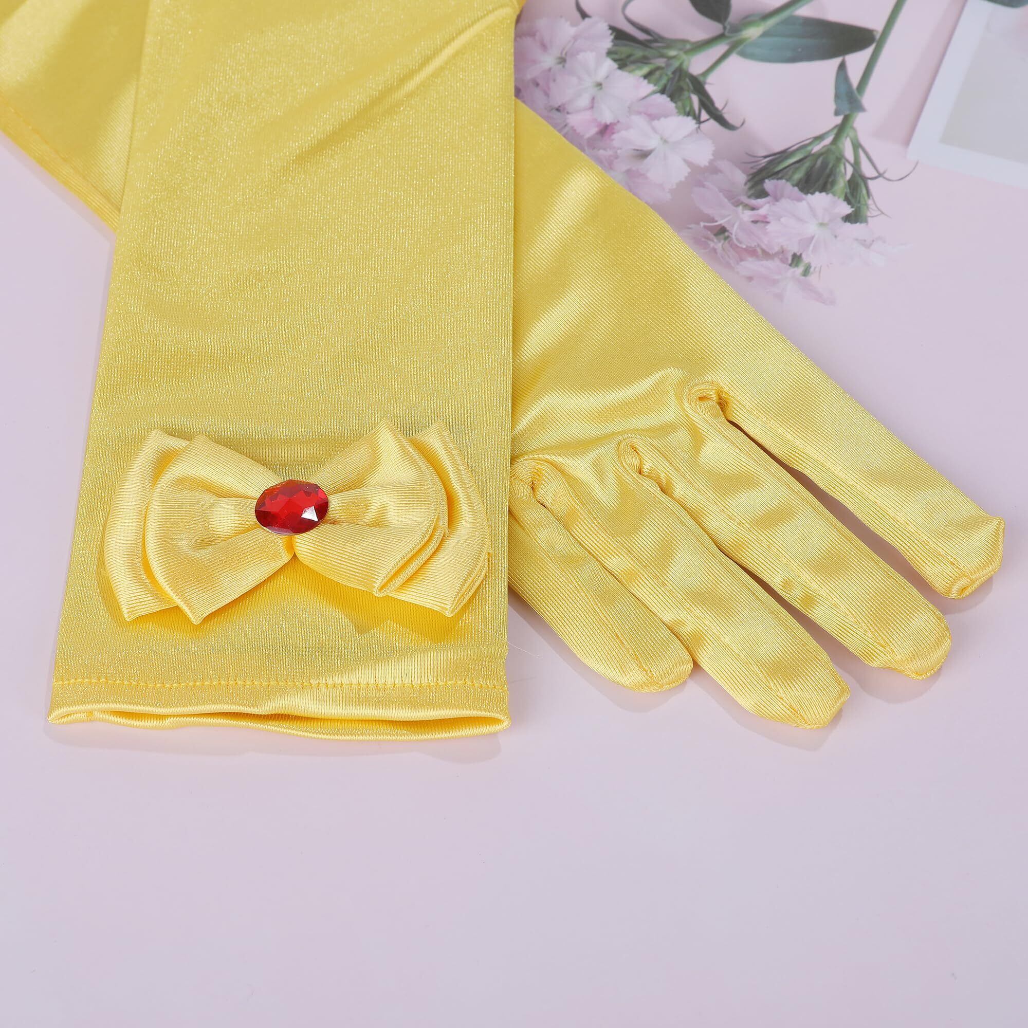 手袋の素材:ポリエステル サテン(伸縮性あり)。ベルドレス風、ラプンツェル風、ソフィア風、オーロラ姫風、エルサ風 いろいろ取り揃えています。