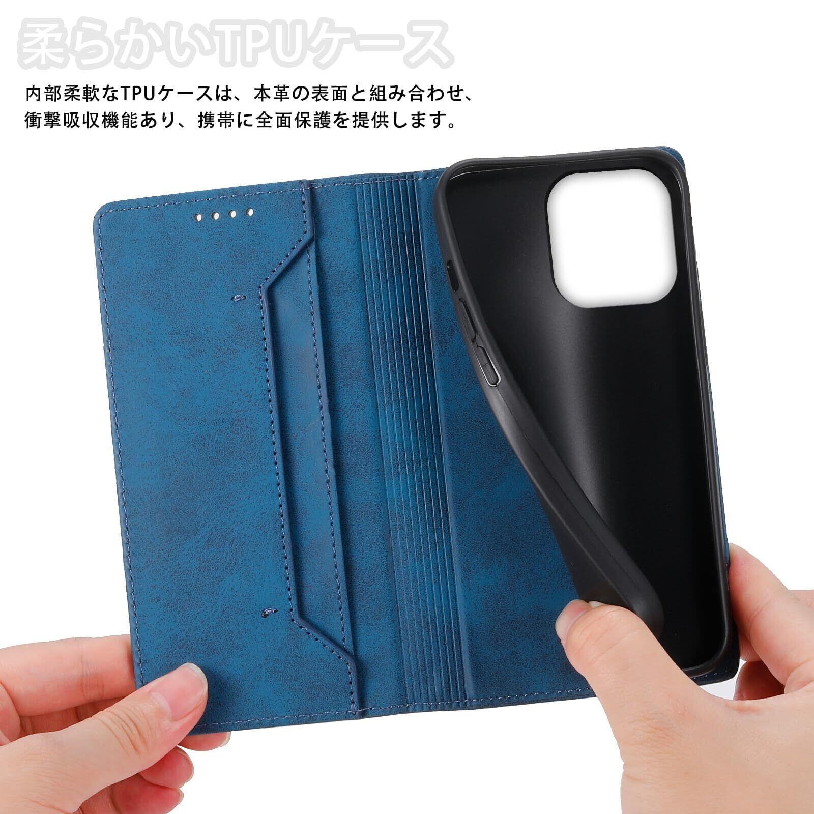 【携帯電話をしっかり保護】アウターケースは高品質な合成皮革(PU)製で、耐熱性、耐衝撃性に優れ、手触りがよく、ホコリや汚れを寄せ付けません。 ケースの内側は耐衝撃性に優れたTPUソフトシェルを採用し、着脱が簡単で、携帯電話本体の滑りや傷を防ぎ、衝撃から360°保護します