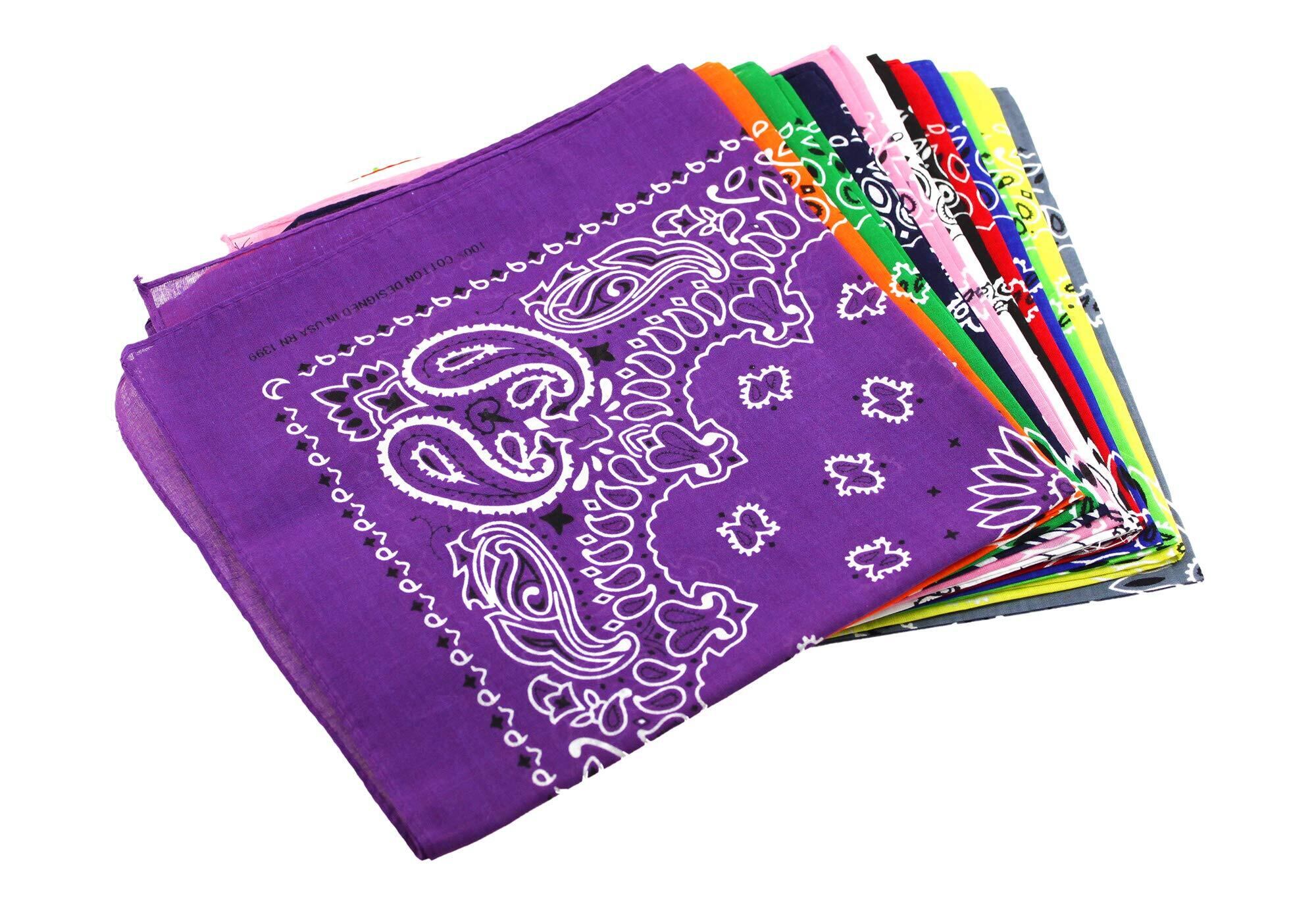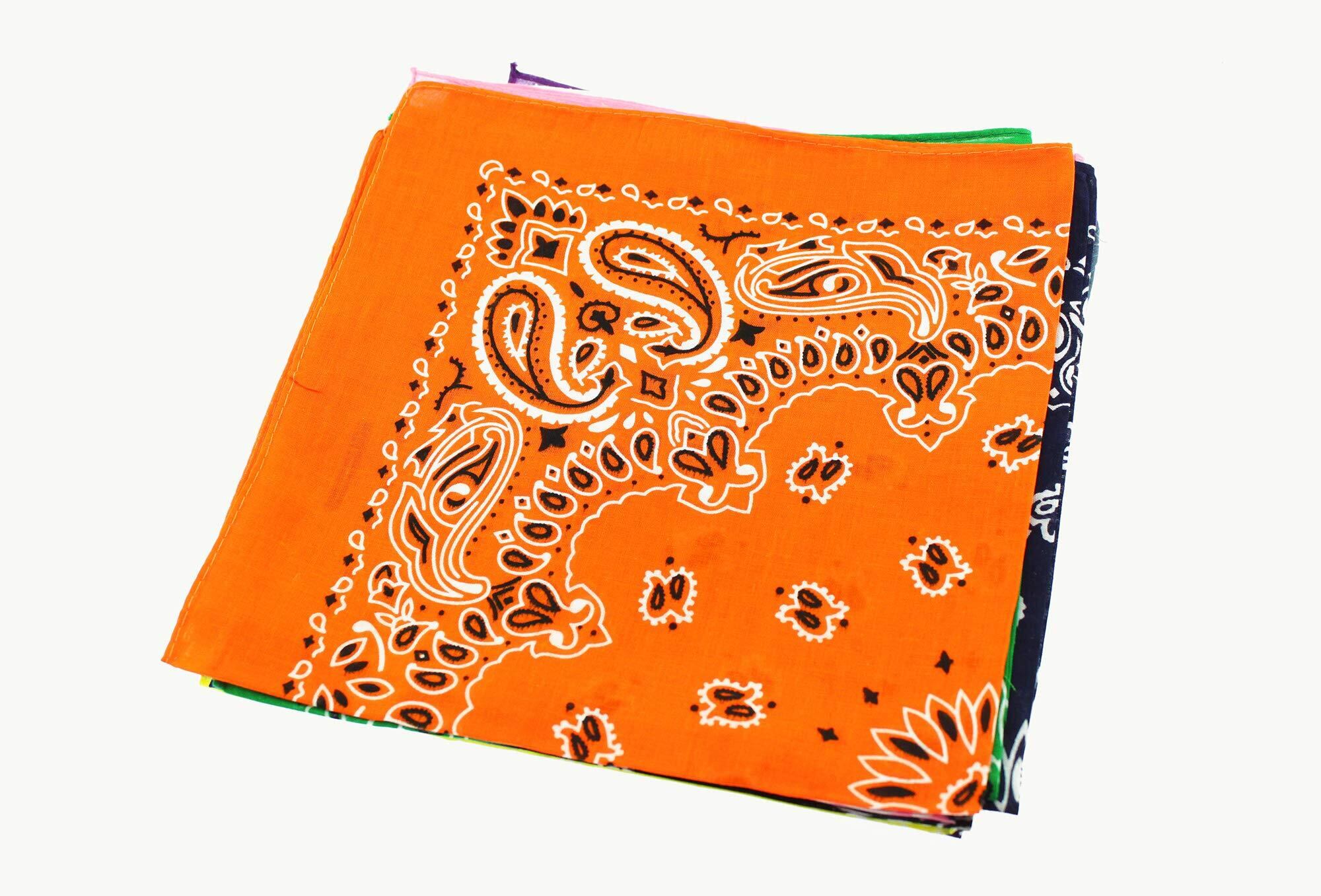 定番のペイズリー柄の大判バンダナ12色セットです。