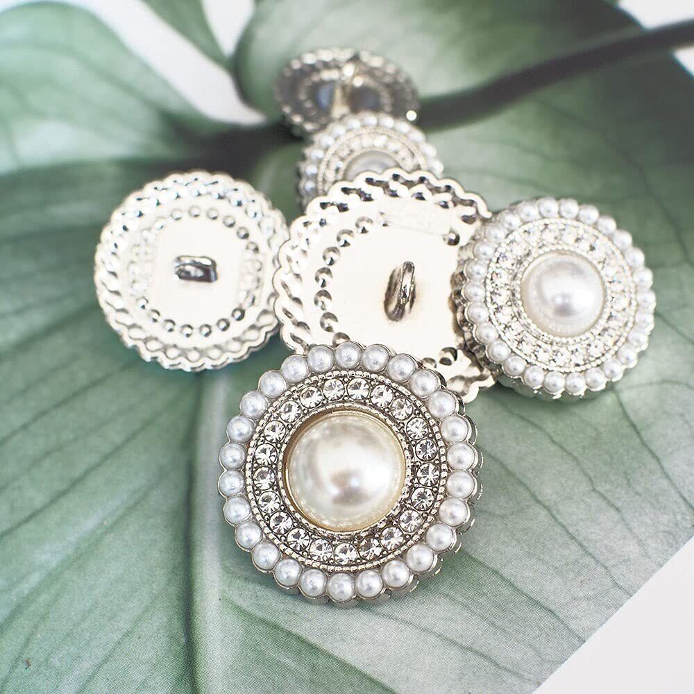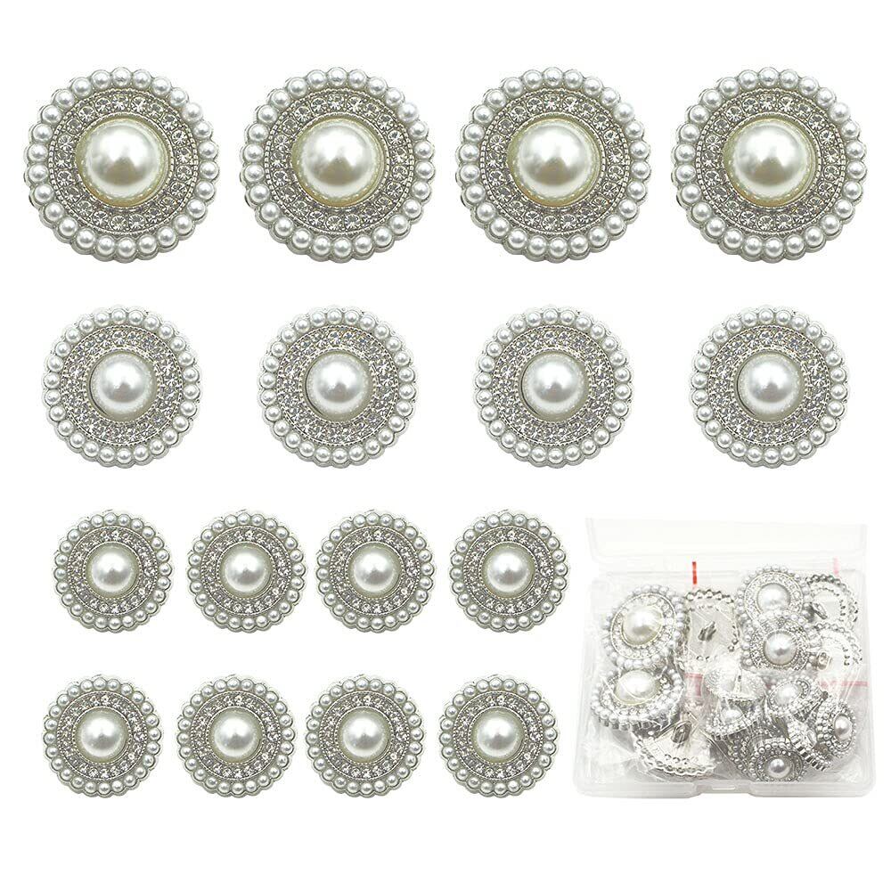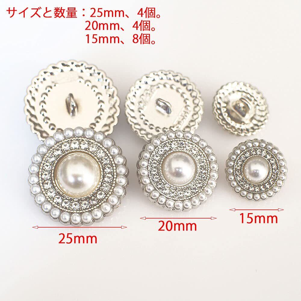 sempiterno レディースおしゃれ メタル パール ボタン レディースジャケットスーツボタン 洋服用 コート用ボタン 交換 修理 DIYハンドクラフトアクセサリー 衣類素材アクセサリー 15mm/20mm/25mm 16個セット (シルバー)