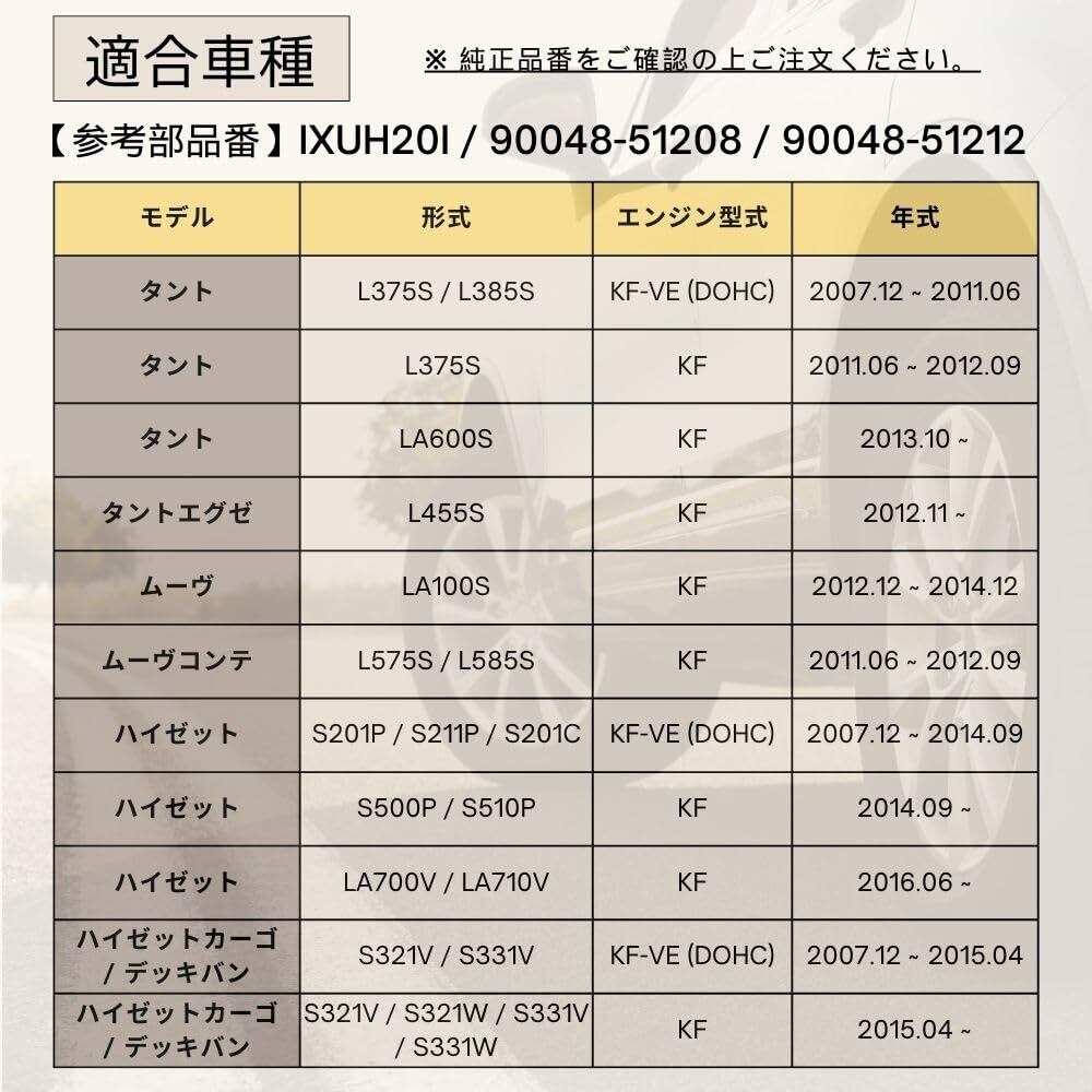 【参考部品番号】IXUH20I (IXUH22)、90048-51208、90048-51212いずれかの取付車両に限ります。
