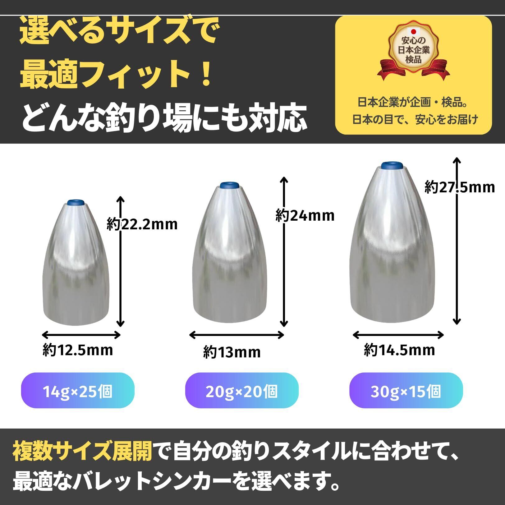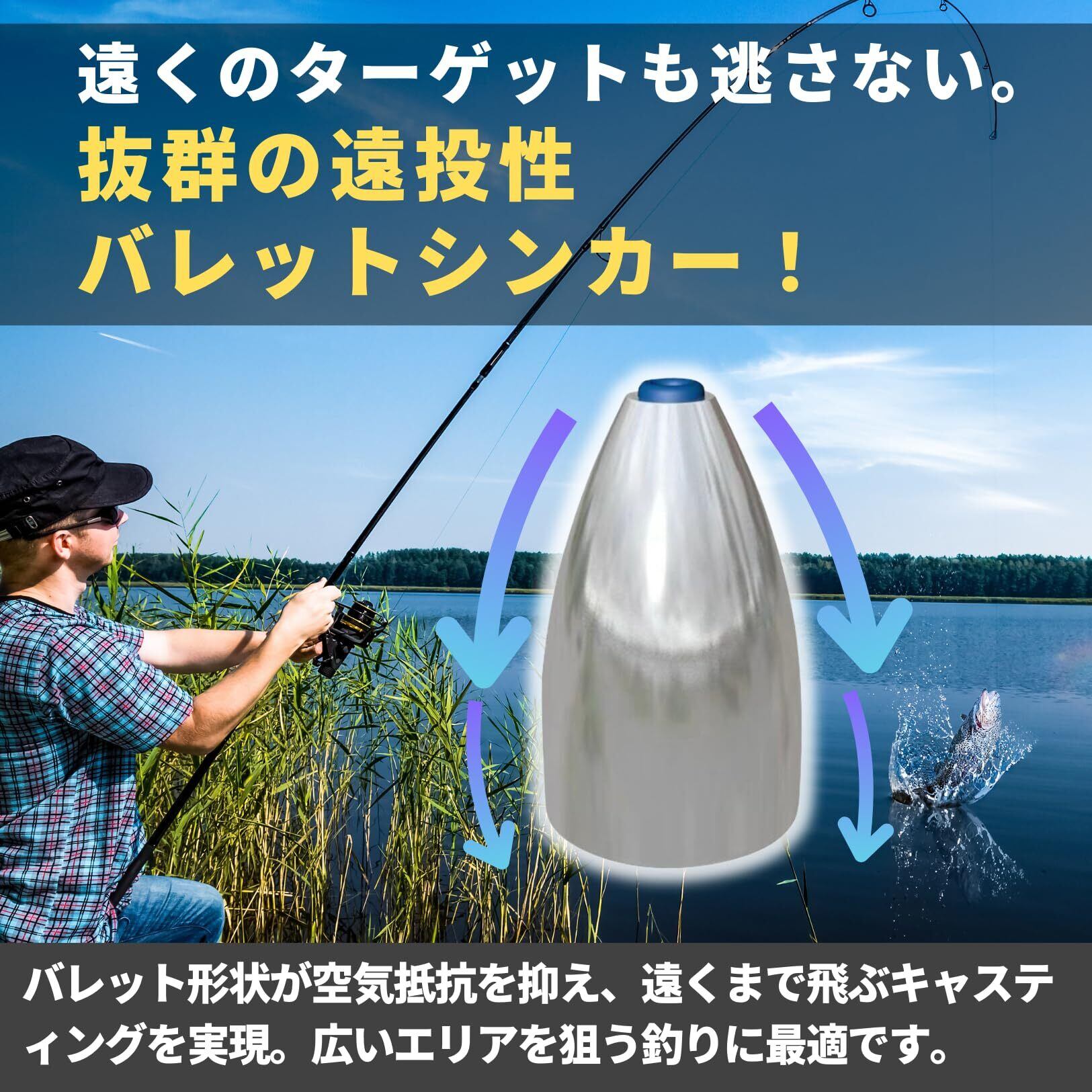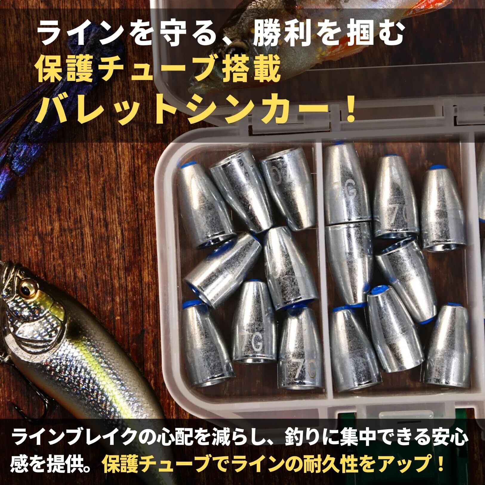 【遠投性抜群のバレット形状】 バレット形状のオモリは、空気抵抗を最小限に抑え、より遠くまでキャスティングが可能です。遠くのポイントを攻めたいときや、広範囲にわたるサーチが必要なときに最適。初心者からプロまで、あらゆる釣り好きが効果を実感できます。