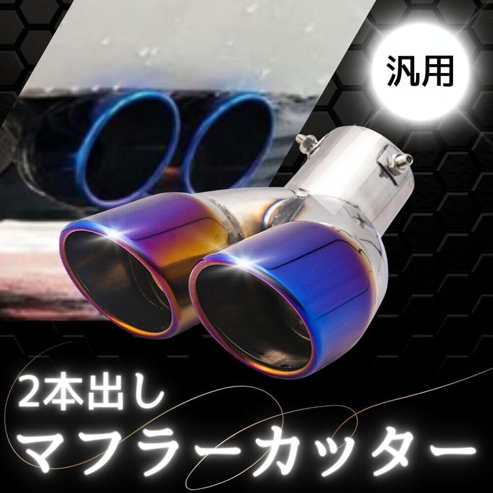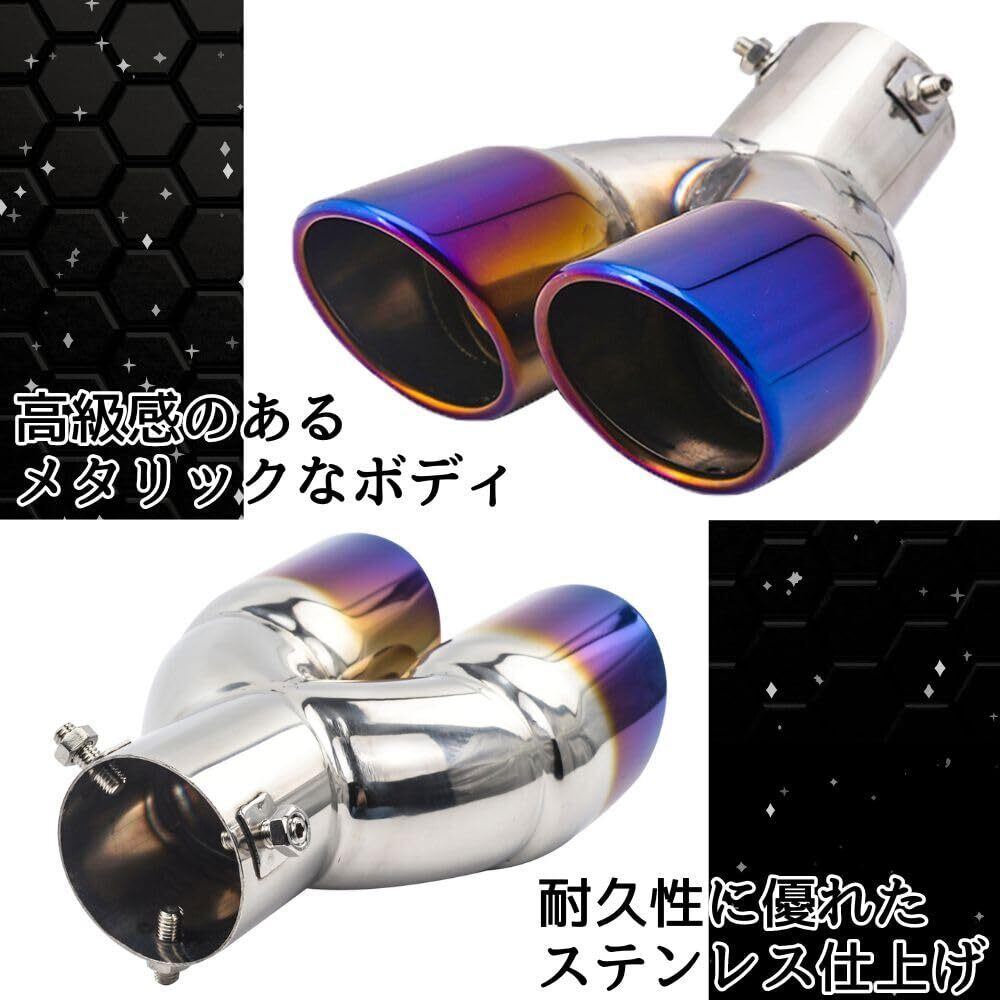 MORASTYLE マフラーカッター ステンレス 音 斜め カット 汎用 下向き 2本出し 63mm (オーロラブルー)