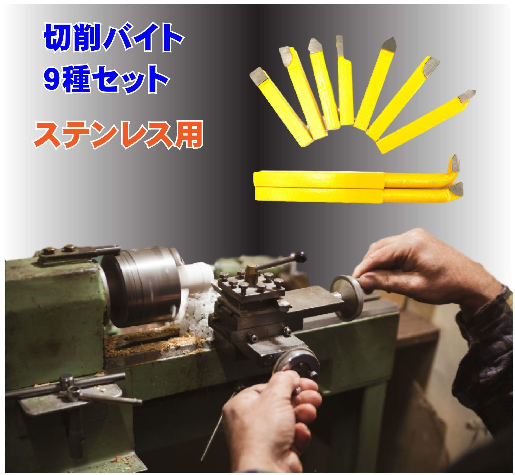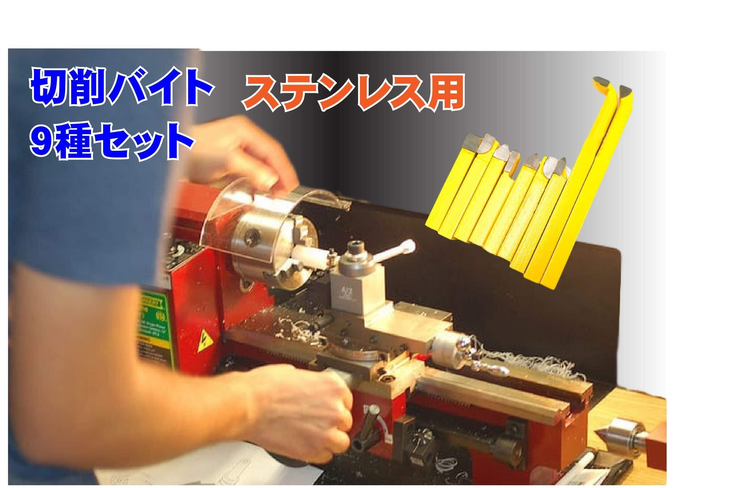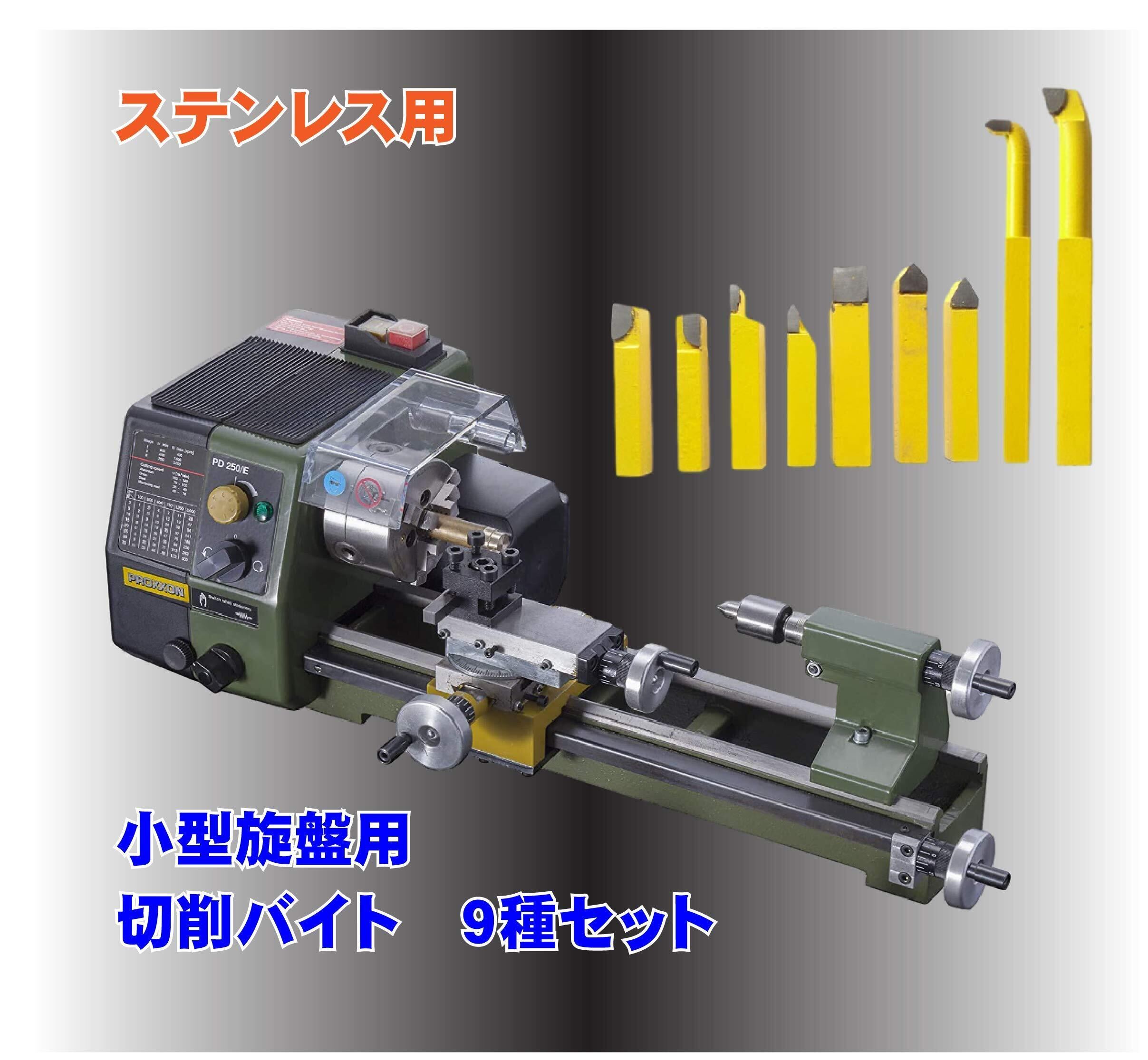 小型旋盤や卓上旋盤等に使用する小型の切削バイト9種類9本のセットです。HSS鋼製、ステンレス用です。もちろん鉄鋼の切削にもOK。
