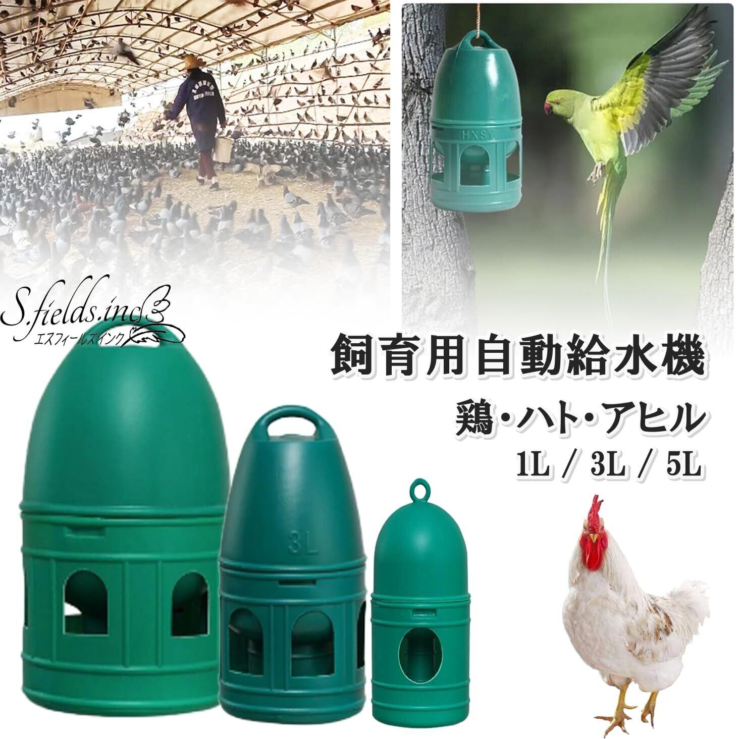 S.fields.inc 鳥給水器 鳥の水飲み器 水入れ 鶏 ひよこ 鳩 ニワトリ アヒル 家禽 家畜 プラスチック (5L)