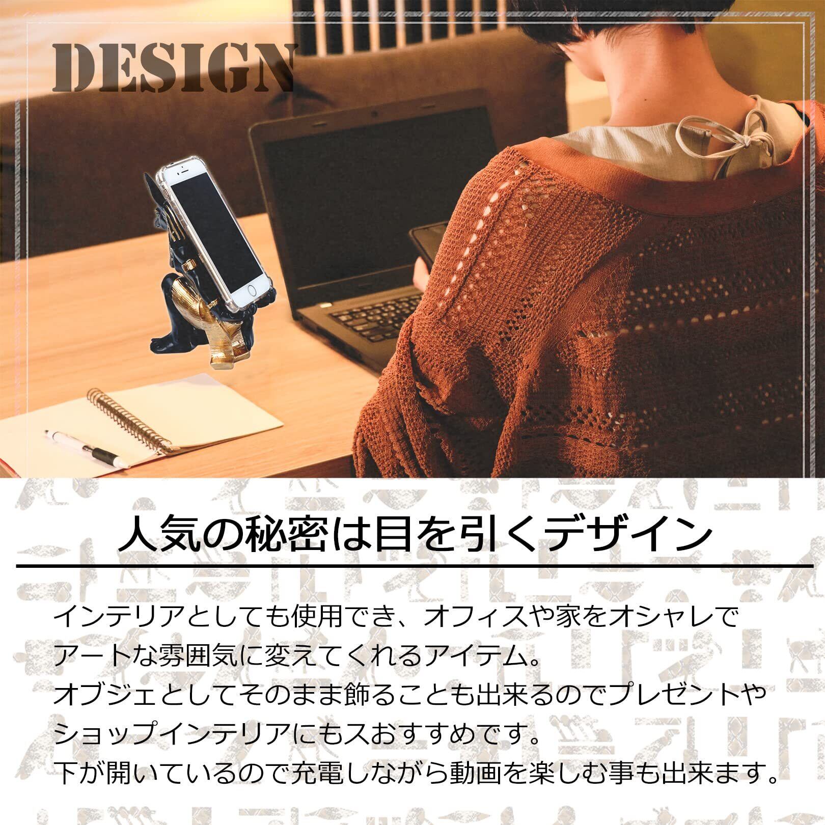 アヌビス神ホルダーにスマホやタブレットを乗せるだけ。4~12インチタブレット、4~7インチスマホに対応、ゲーム用コントローラーのホルダーにも。オシャレで面白いガジェットをお探しの人に、オブジェにも最適。
