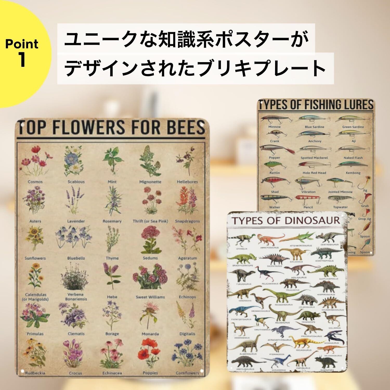【ユニークな知識系デザイン】科学ポスターや蛇vsマングースの対決、人体解剖図、飲食系インフォグラフィックなど、遊び心と知識が詰まったデザイン。会話のきっかけにもなる楽しい壁面装飾です。