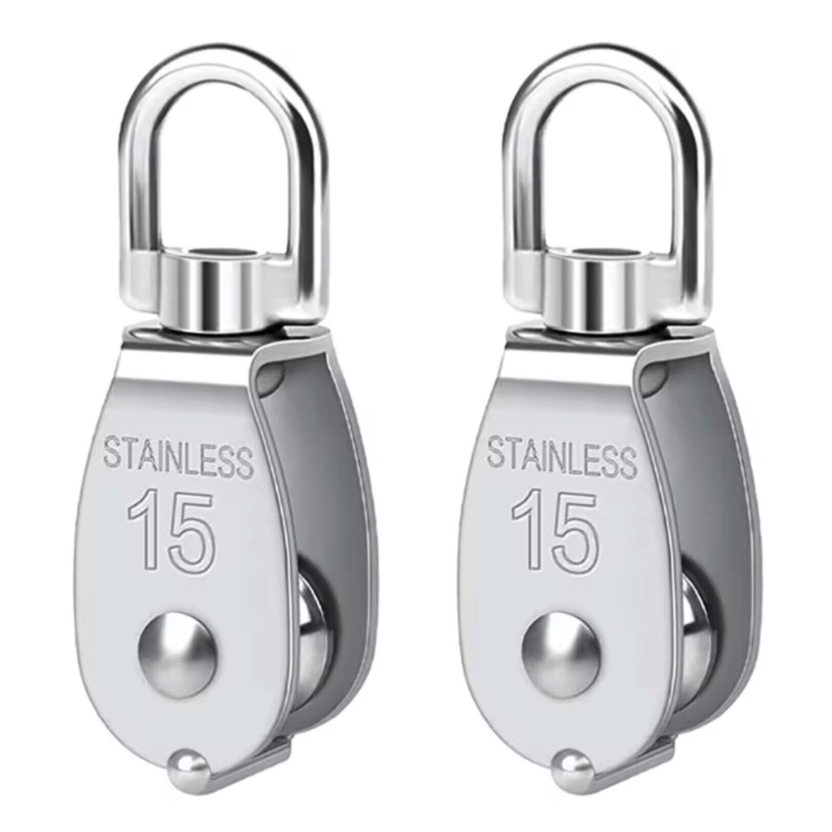 PLEAVIT 滑車 小型 ミニ プーリー SUS304 ステンレス ロープ クライミング 貨物輸送 スイベル式 (M15 2個)