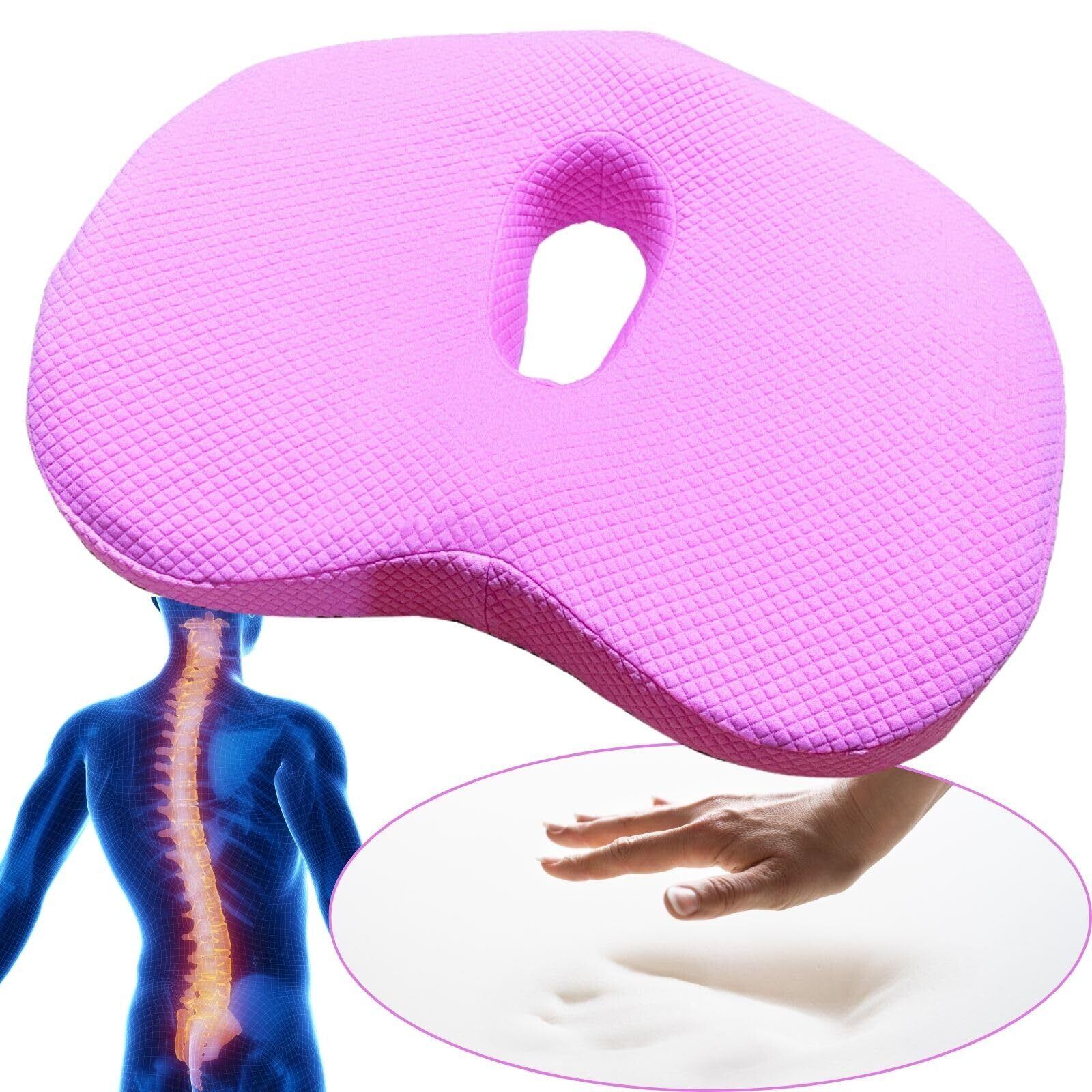 クッション【腰肩専門整体師が絶賛!!】座布団 低反発 洗える 通気性 蒸れない お尻が痛くならない 産前産後 円座 持ち運び 椅子 長時間 無地 オフィス(ピンク(O型))