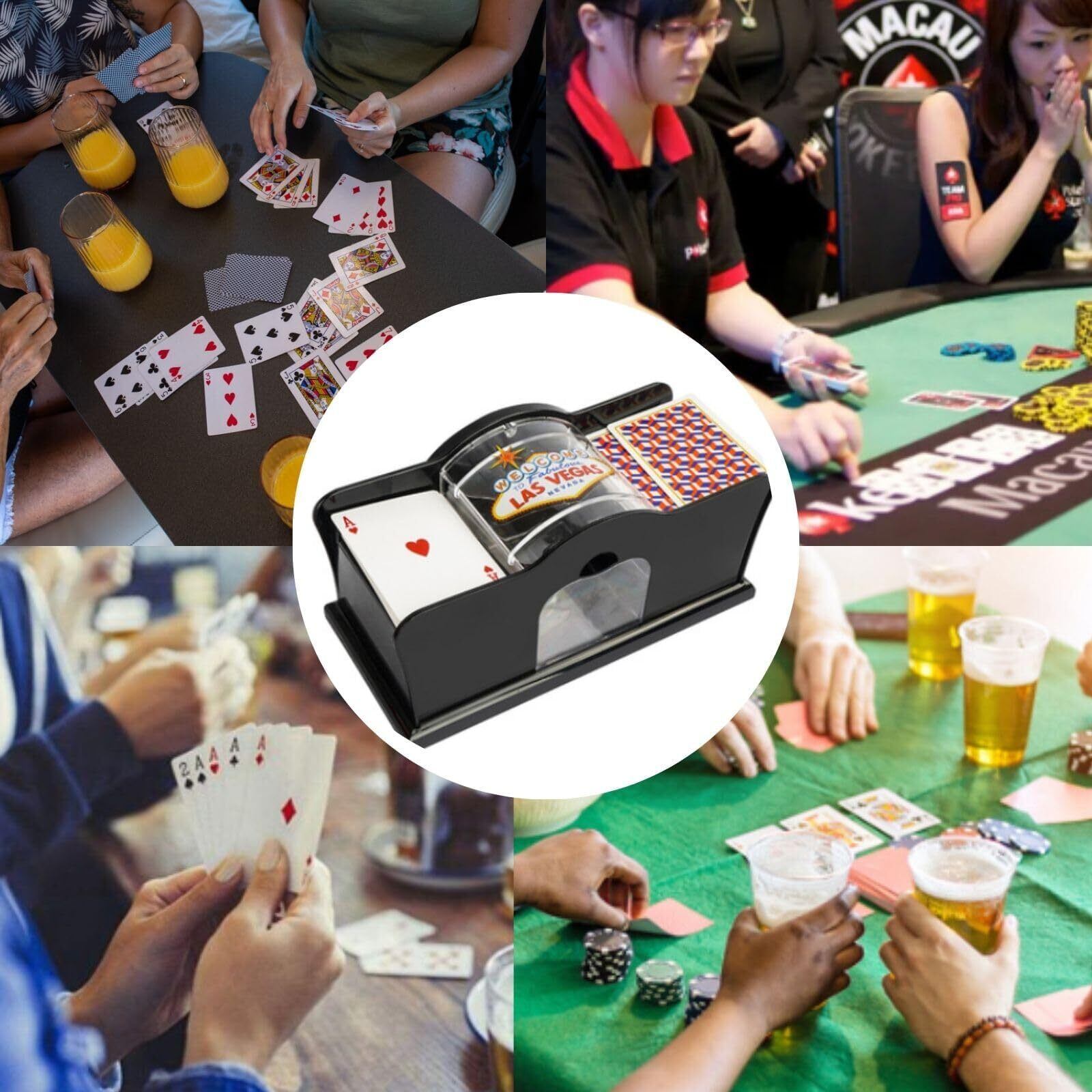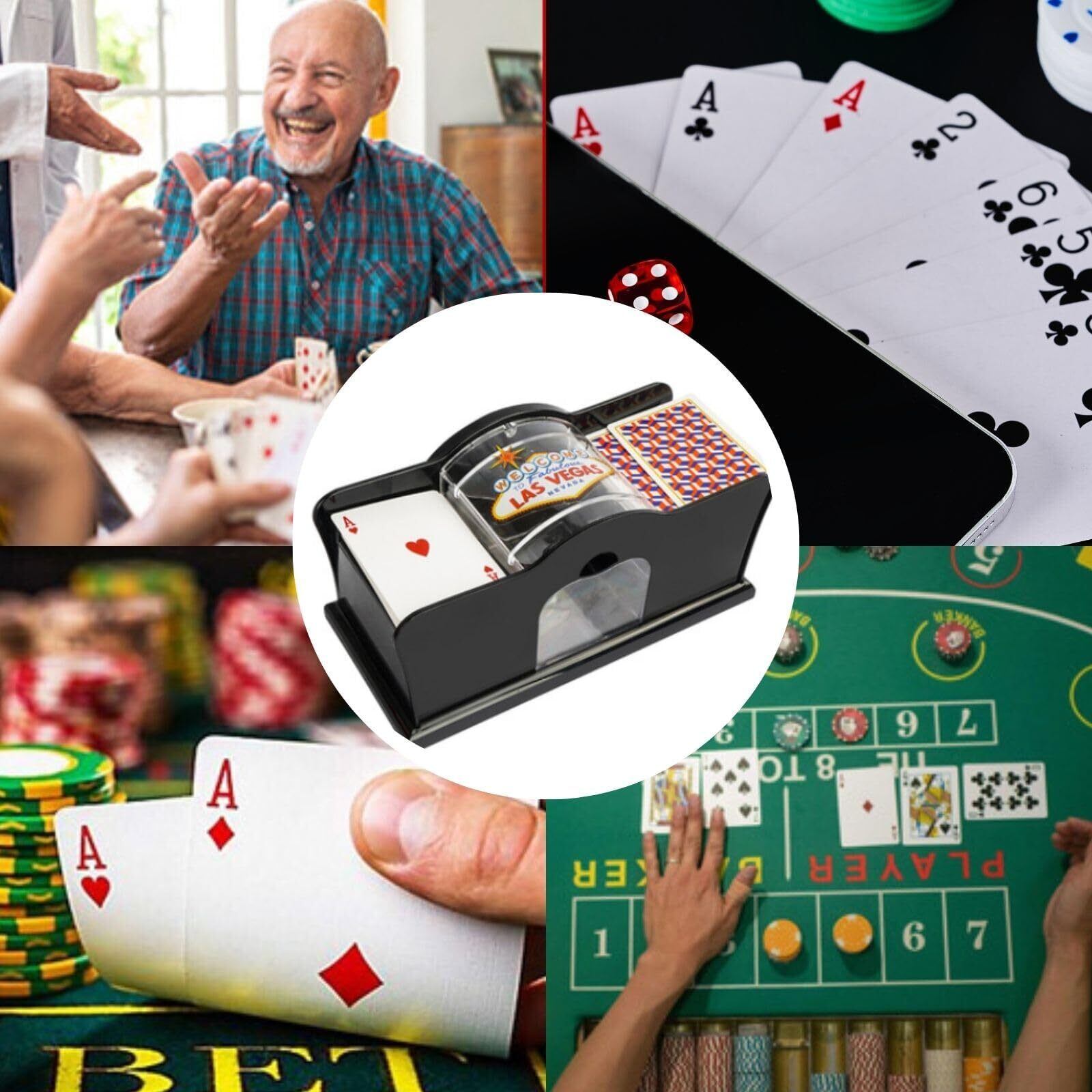 【カードシャッフル機】ポーカーセットや、ウノ カードゲーム、一般的なトランプ、カジノ用にも適用。カードシャッフラーにカードをセットし、ハンドルを回すだけでカードがシャッフルされます。