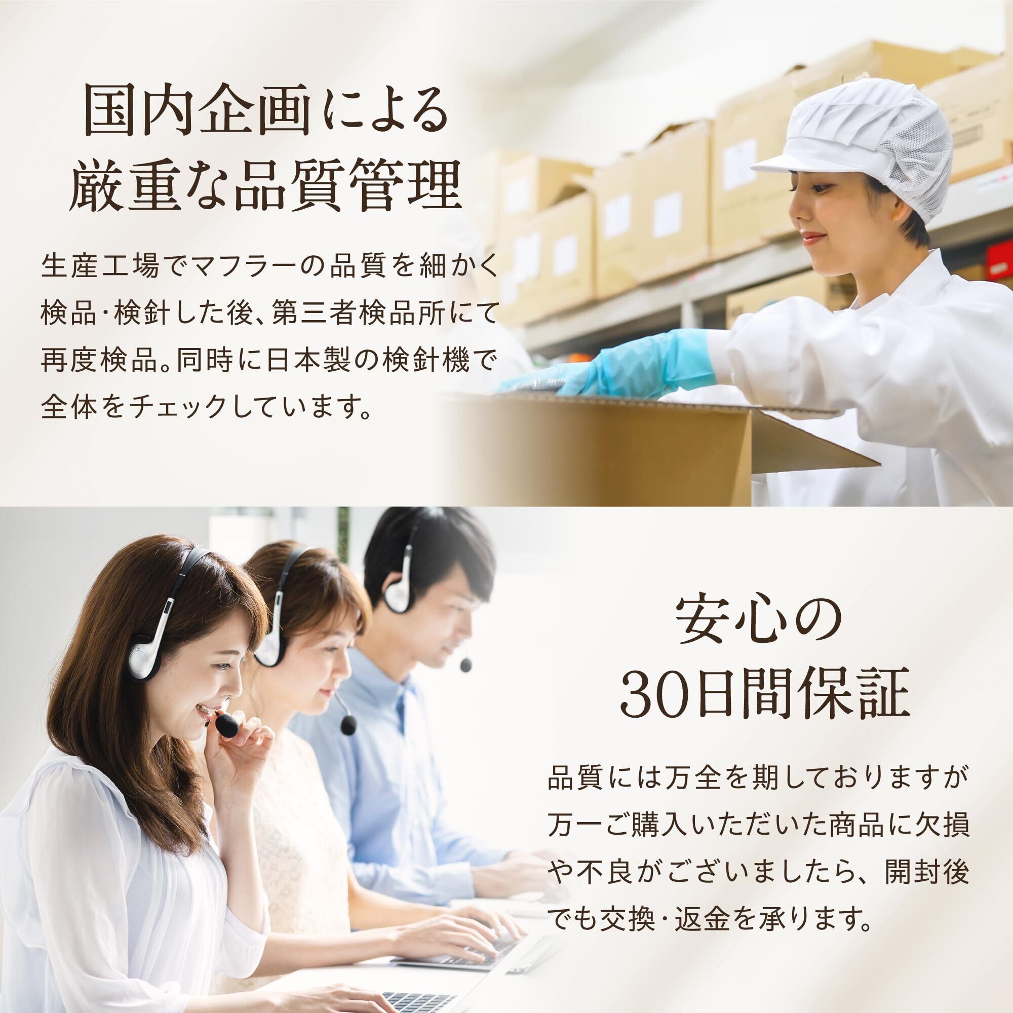 【安心の日本企画】日本国内にて企画し、製造依頼・輸入・販売を当社にて行うことにより中間コストを削減し、高品質なカシミヤをブレンドしたマフラーをお求めやすい価格にて提案いたします