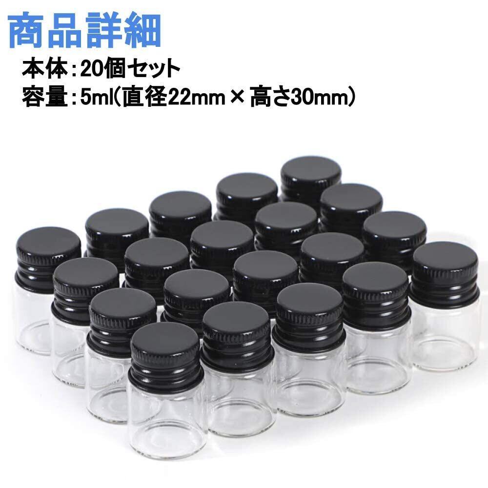 Chocople 小瓶 ガラス瓶 ミニボトル 小物 保存 容器 保管 小分け (5ml ブラック)