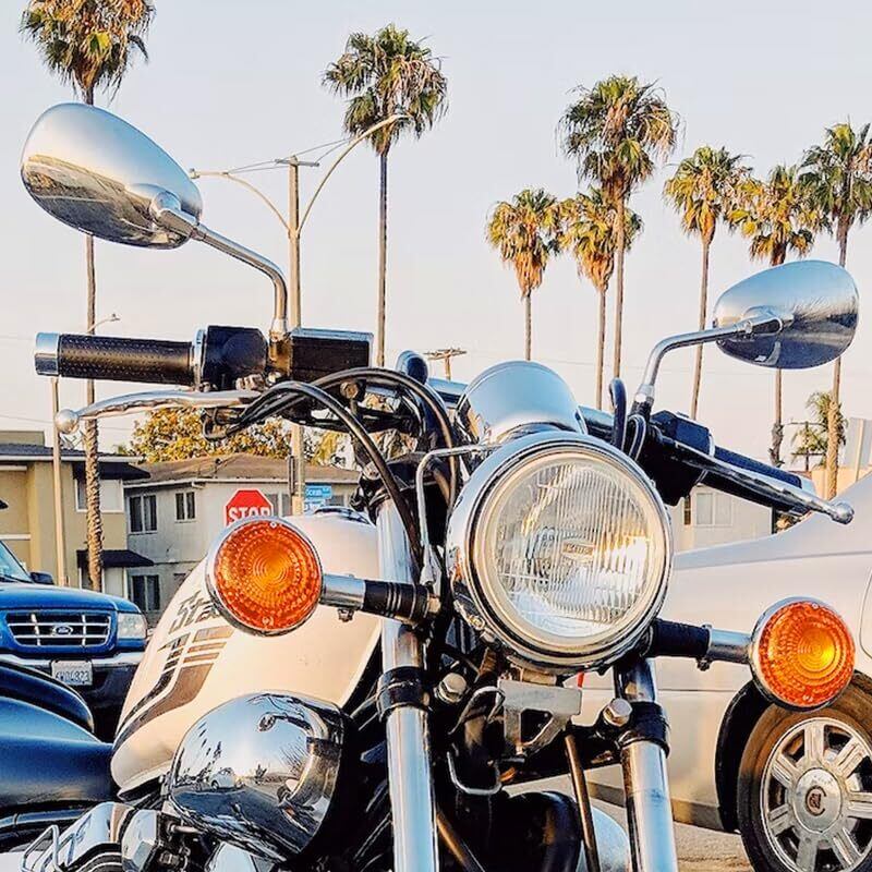 汎用 丸み スクエア型 バイクミラー メッキ加工 正ねじ 10mm 左右セットです。 ・スタイリッシュ×モダン。丸みのあるスクエア型のミラーがおしゃれでかっこいい。シンプルで馴染みやすいデザインなので様々なタイプのバイクに合います。 ・M10規格のネジを使用することで、振動の多い車種や場面にも強い仕上がりになっています。 ・光沢感と反射能力に優れたクロームメッキ仕上げで高級感を演出。耐久性にも優れています。 ・汎用性の高いネジ規格M10正ネジ(10mm)を採用。ネイキッド、スポーツ、アメリカン、カフェレーサー、クラシック、旧車、スクーターなど、様々な車種のバイクにご利用いただけます。 ※購入前に必ずご利用車種や本製品サイズ等をご確認の上、ご自身のバイクに装着可能かどうかをご確認ください。説明書の添付はございませんのでご注意くださいませ。 【サイズ】ミラー部分(1番長い部分):縦9cm×横15cm、【ネジ規格】M10正ネジ(10mm)、【重量】約510g/個、【素材】クロームメッキ 【バリエーション】左右2個セットと左右2個セット×2(合計4個)の2種類よりお選びいただけます。