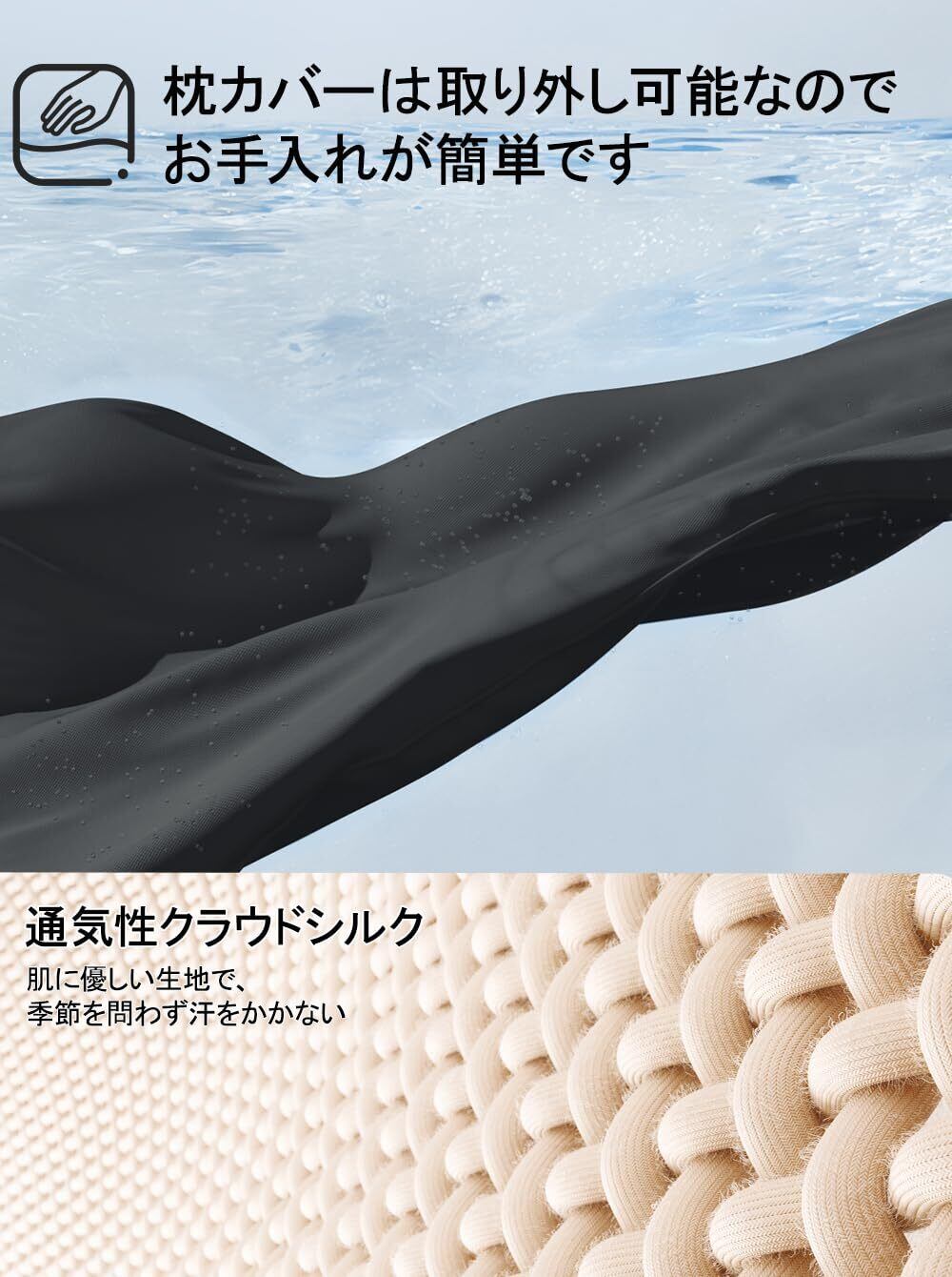 【材質】ネックパッドの部分は、柔らかく肌触りがよく通気性に優れた3Dメッシュ状のクッションカバーです。夏場でも快適に使用できます。内側はドイツから輸入された高品質のメモリーフォームは、環境に優しく、独特の臭いがなく、柔らかく弾力性があり、弾力性のある感触があり、 枕に寄りかかると、ソファにもたれかかるように感じます。低反発のため、耐久性がよくて変形しにくいです。押したら約3-5秒で原状に戻ります。