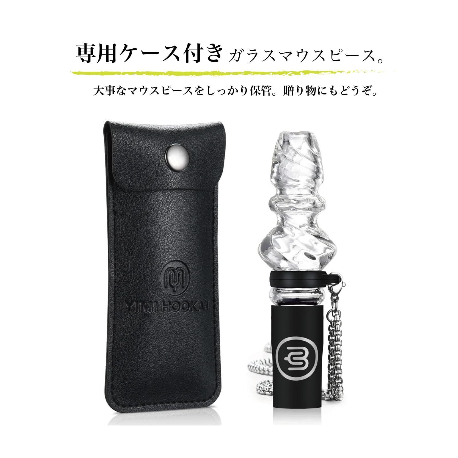 YIMI HOOKAH イミフーカ シーシャ用ガラスクリアマウスピース ステンレスストラップ 付属 専用ケース付き 初めてのマイマウスピースに 水たばこ スタイリッシュ