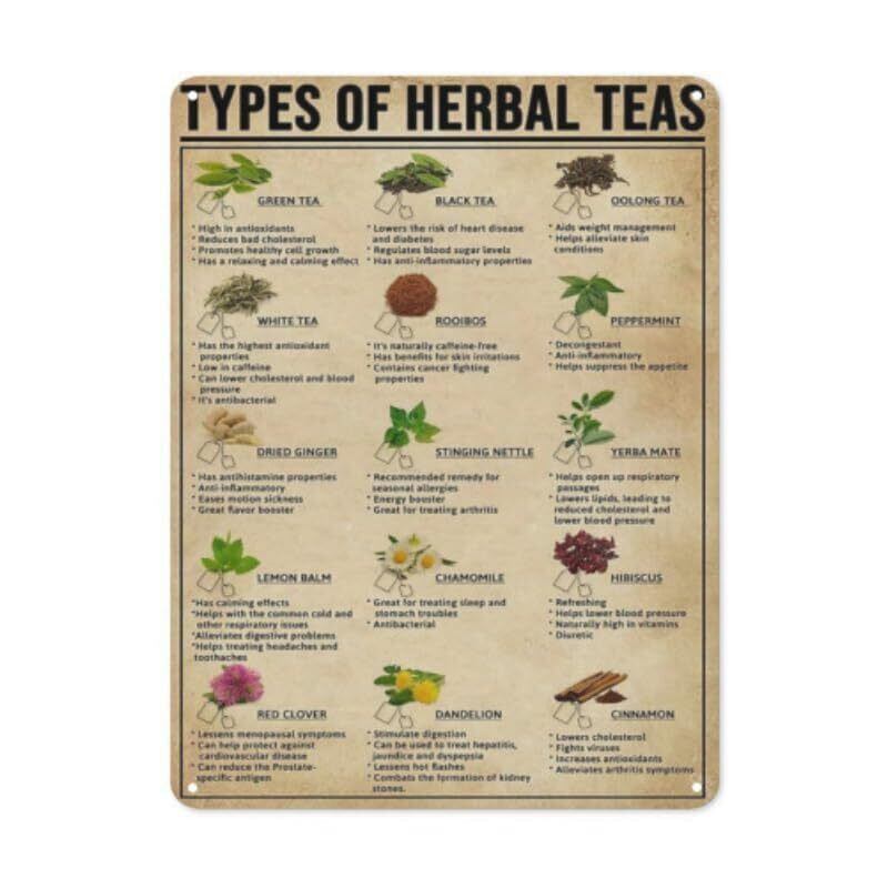 ブリキ看板 レトロサイン 科学ポスター風 知識系デザイン 20×30cm アメリカンスタイル ブラック NYANDELMO ND-0190-R04-002-HERBALTEAS