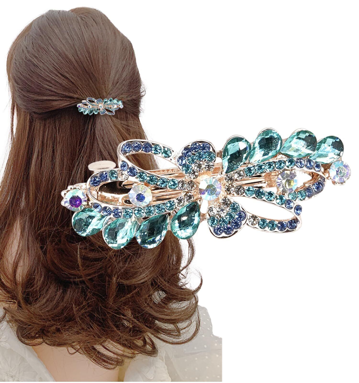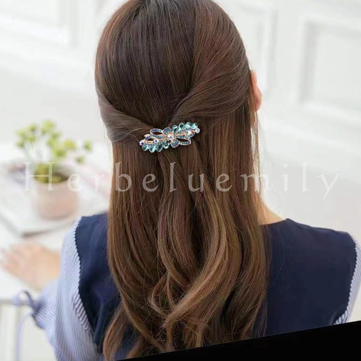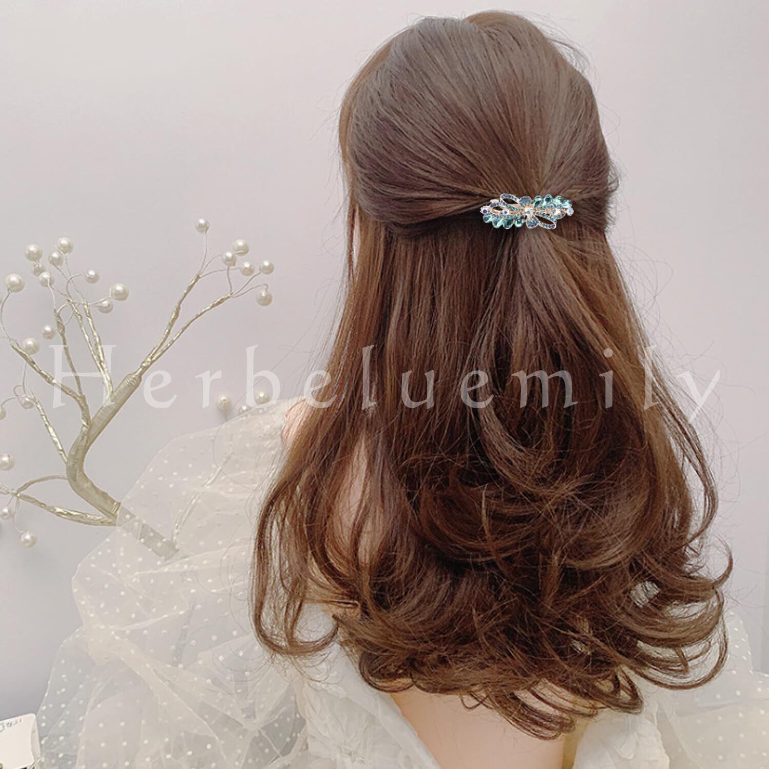 [Herbeluemily] バレッタ ビジュー ストーン 金具 髪留め ヘアクリップ おしゃれ 大人 上品 ブーケ ブルー HM-0114-R04-BU