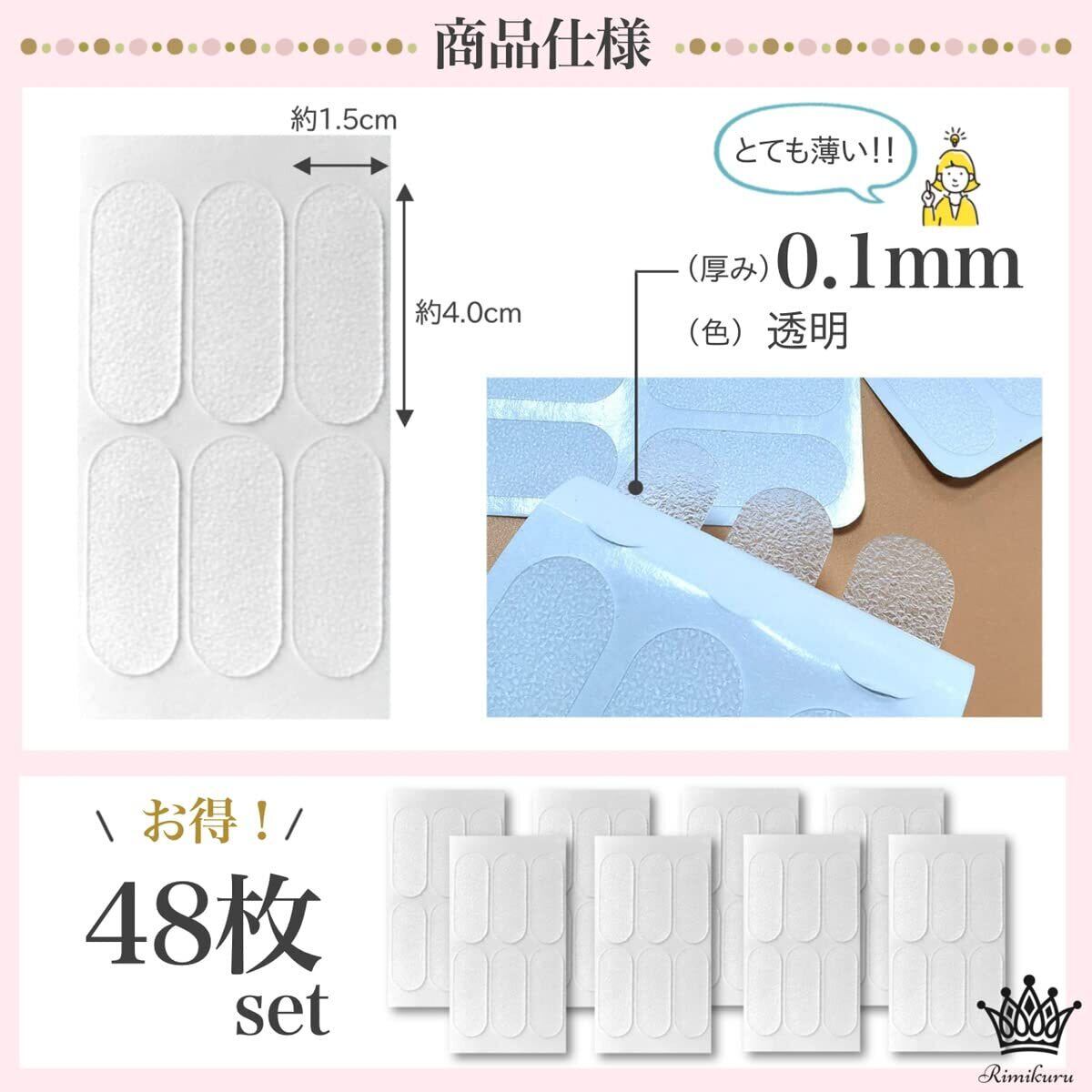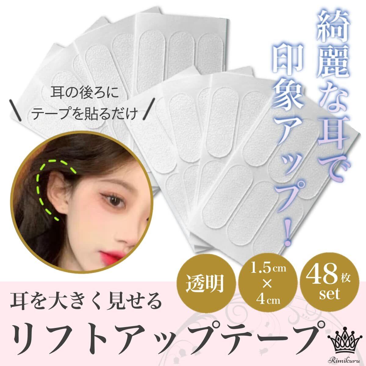 【商品仕様】セット内容:イヤーアップステッカー リフトアップテープ × 48枚セット サイズ:(1枚あたり)約1.5cm×約4.0cm 厚み:0.1mm 色:透明 当商品はプライム対象商品になります。国内倉庫より発送されるので、お手元にすぐ届きます。