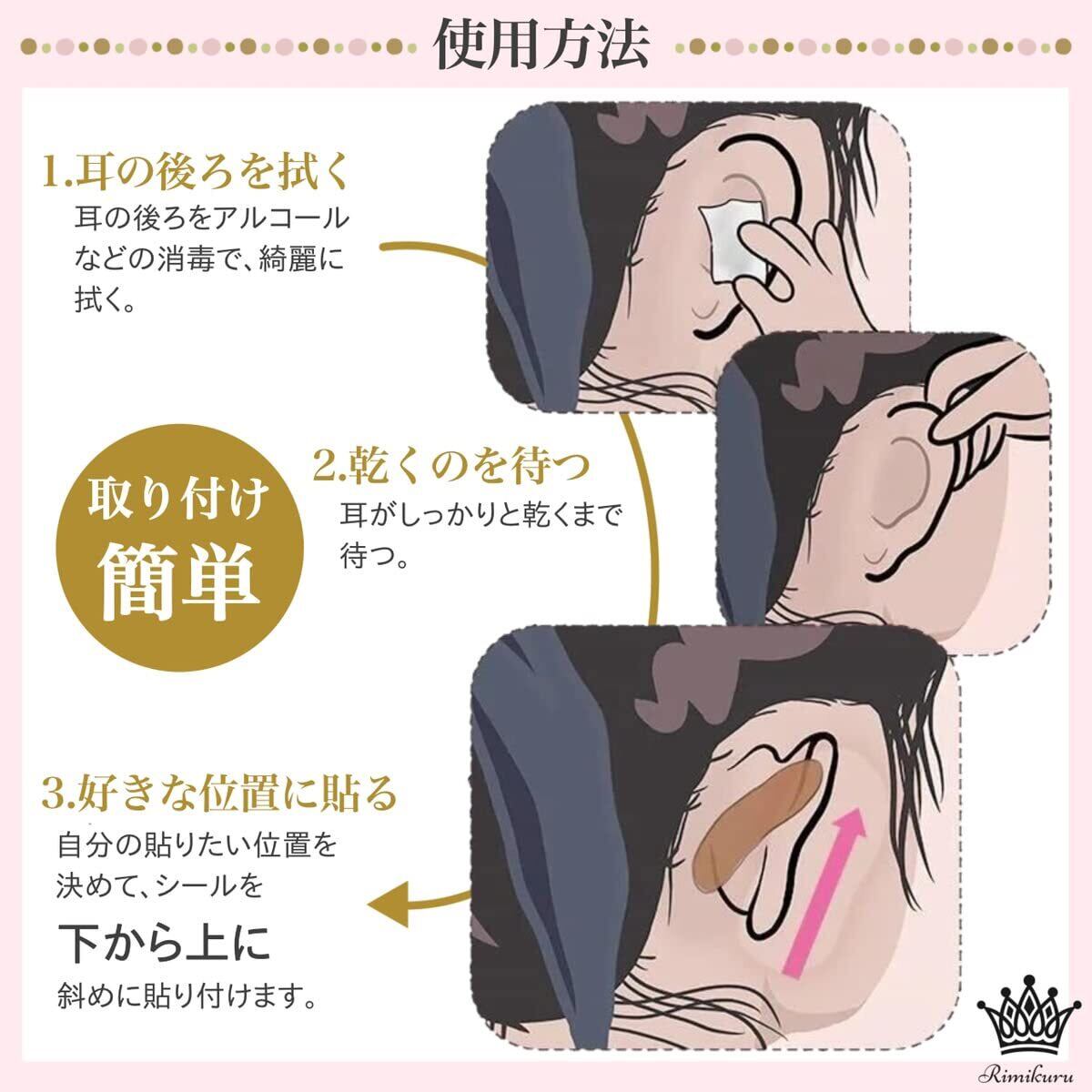 透明・極薄で目立たない:こちらのイヤーアップステッカー リフトアップテープは透明で非常に薄いので、貼っても目立たず自然な形で耳を綺麗に見せる事ができます。大人から子供、男性の方もご使用いただけます。