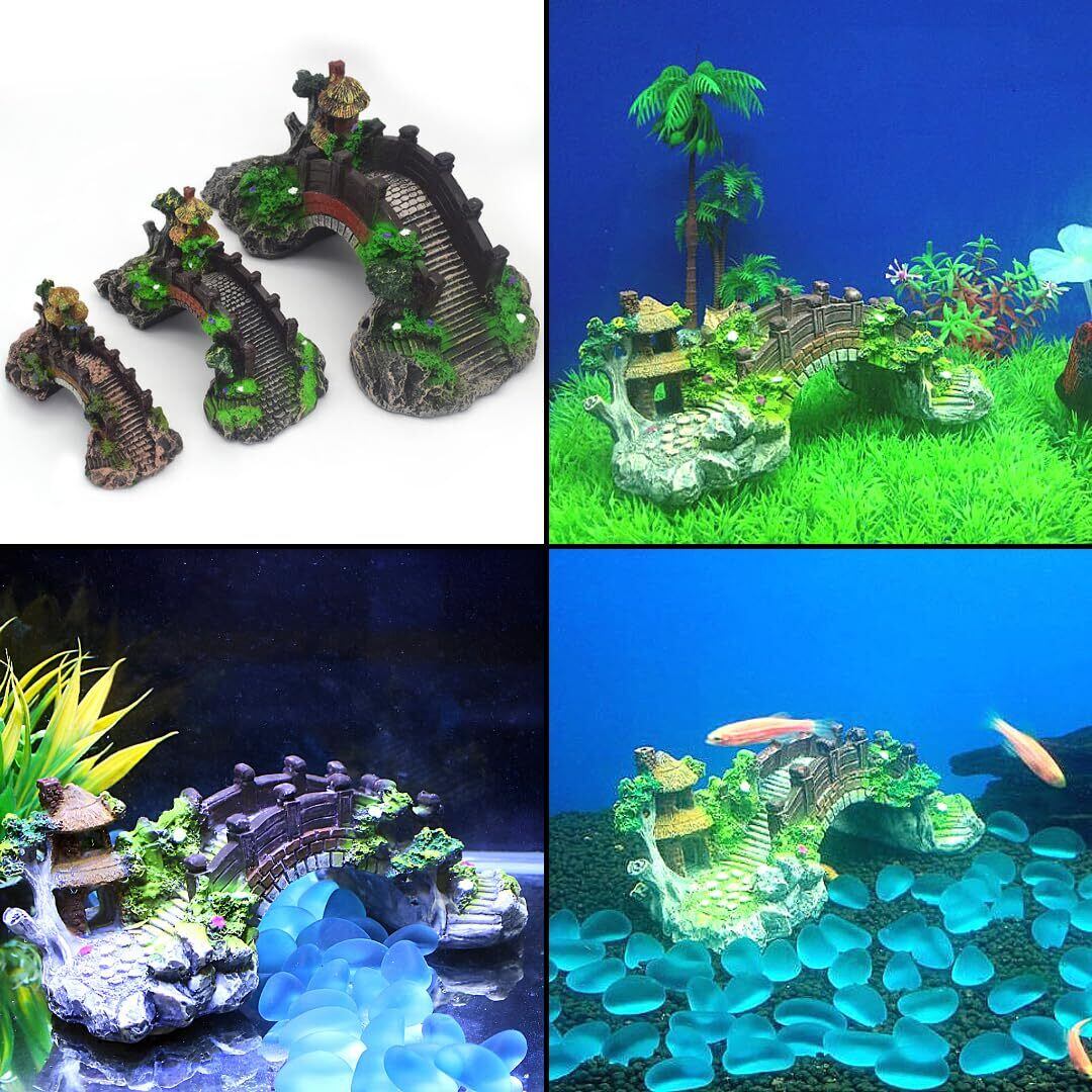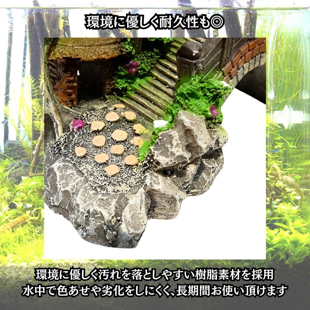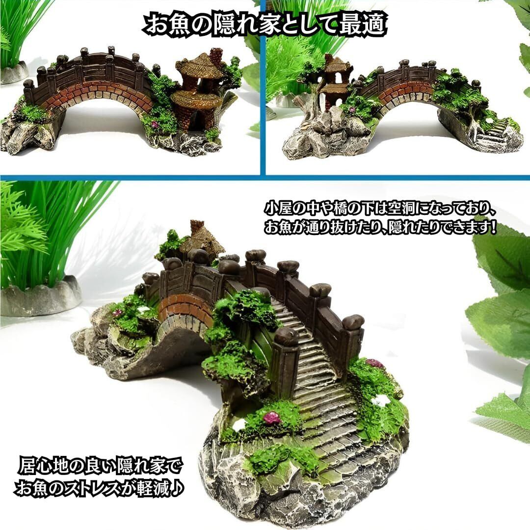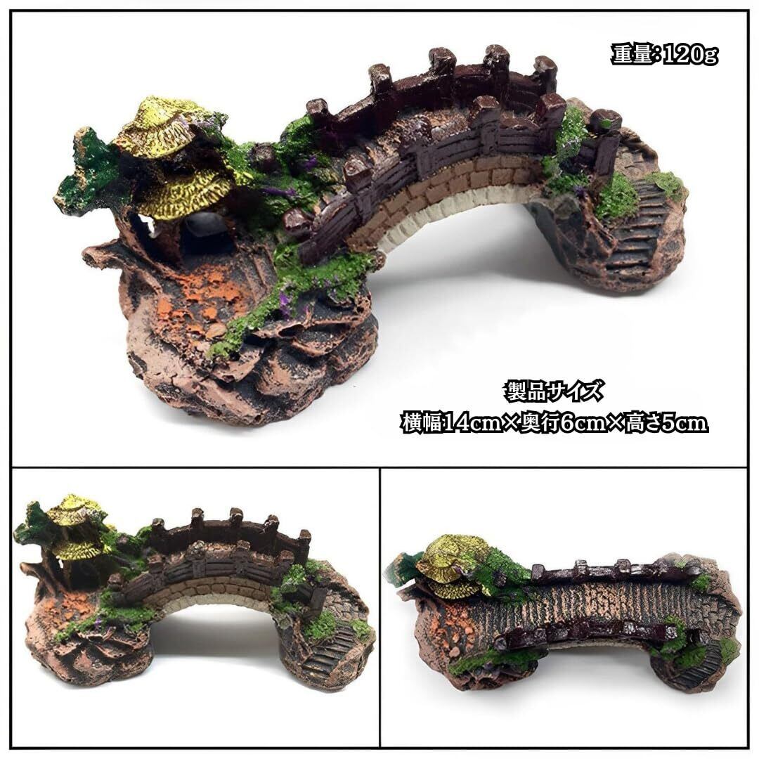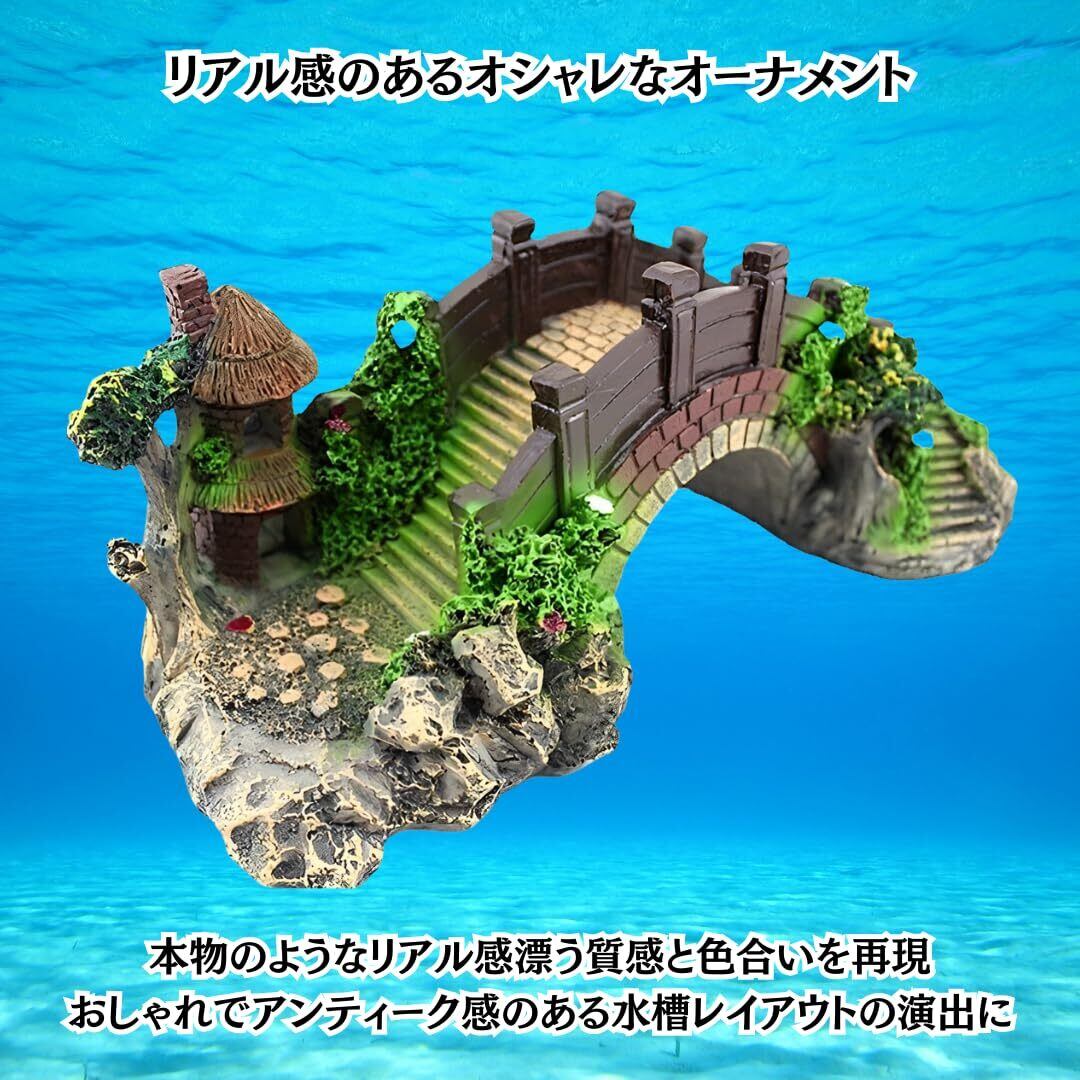 Charmoon アクアリウム 水槽 オブジェ 橋 アーチ 隠れ家 シェルター リアル 和風 日本庭園 (S, グリーン)