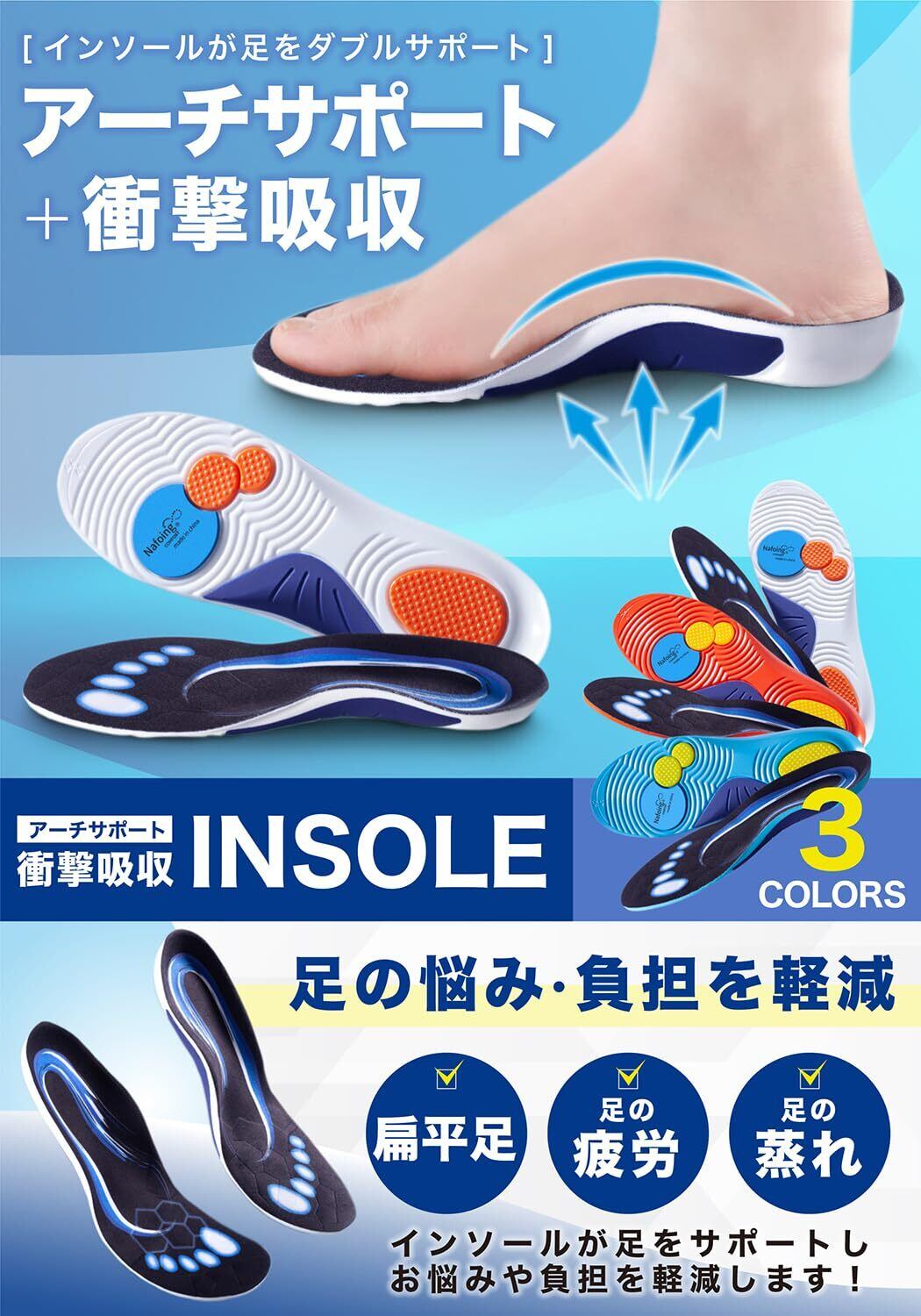商品特長 アーチサポート 衝撃吸収 サイズ調整可能