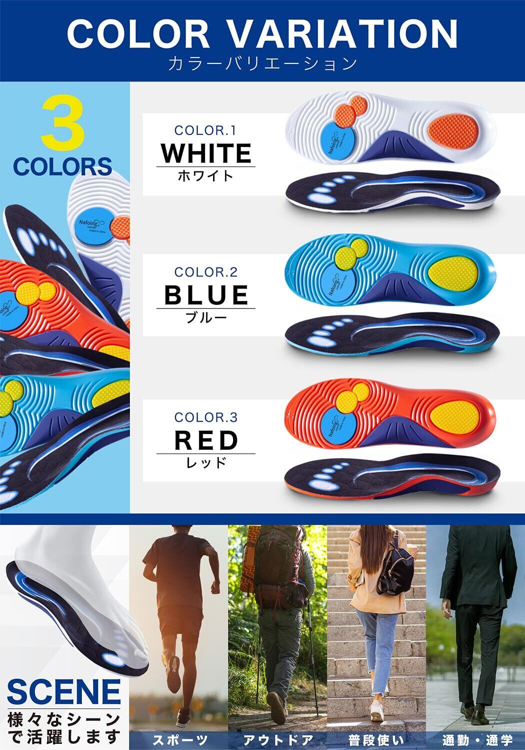 【あらゆるシーンで活躍!】立ち仕事が多い方、スポーツをする方など、男女兼用で幅広い層におススメ。