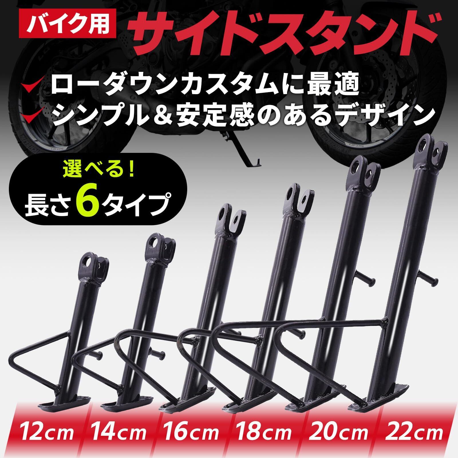 UB-Lab. バイク 用 サイド スタンド 原付 アシスト フック キック スタンド 転倒 防止 ボルト バネ 付 (ブラック) 14cm 140mm