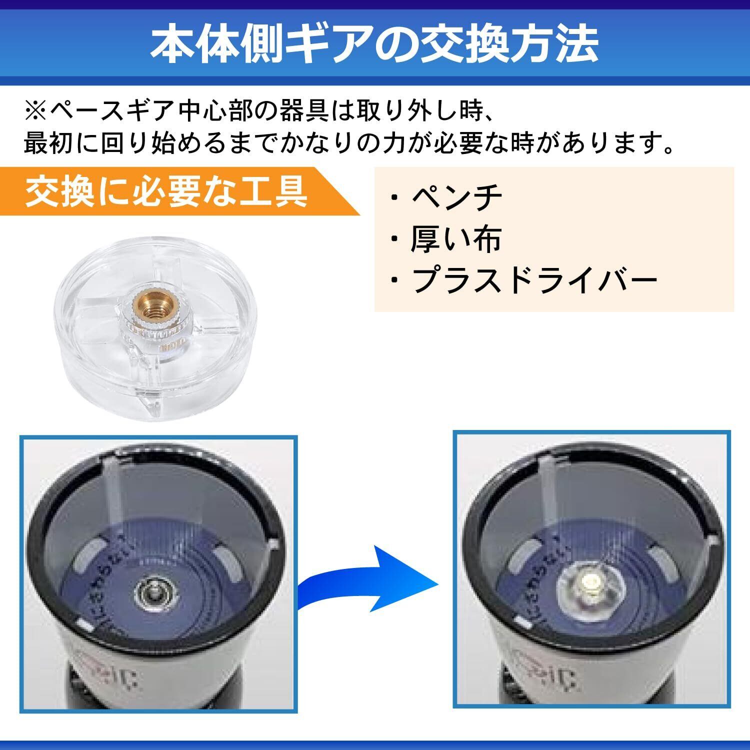 通常のネジと逆方向に回す事で取り外しが可能でございます。マジックブレット本体のベースギア交換はYouTubeなどで公開されていますのでご確認下さい。